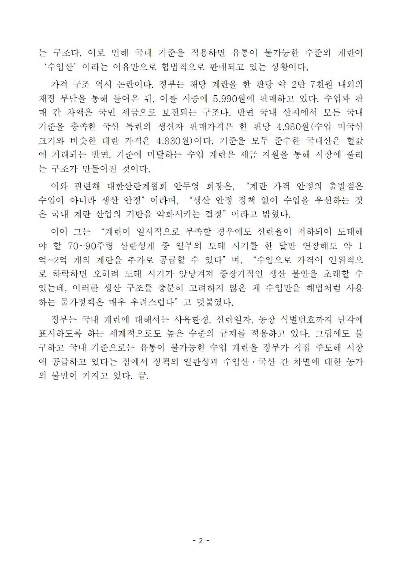 기준미달 계란 수입해놓고, "소비자 보호" 생색 |