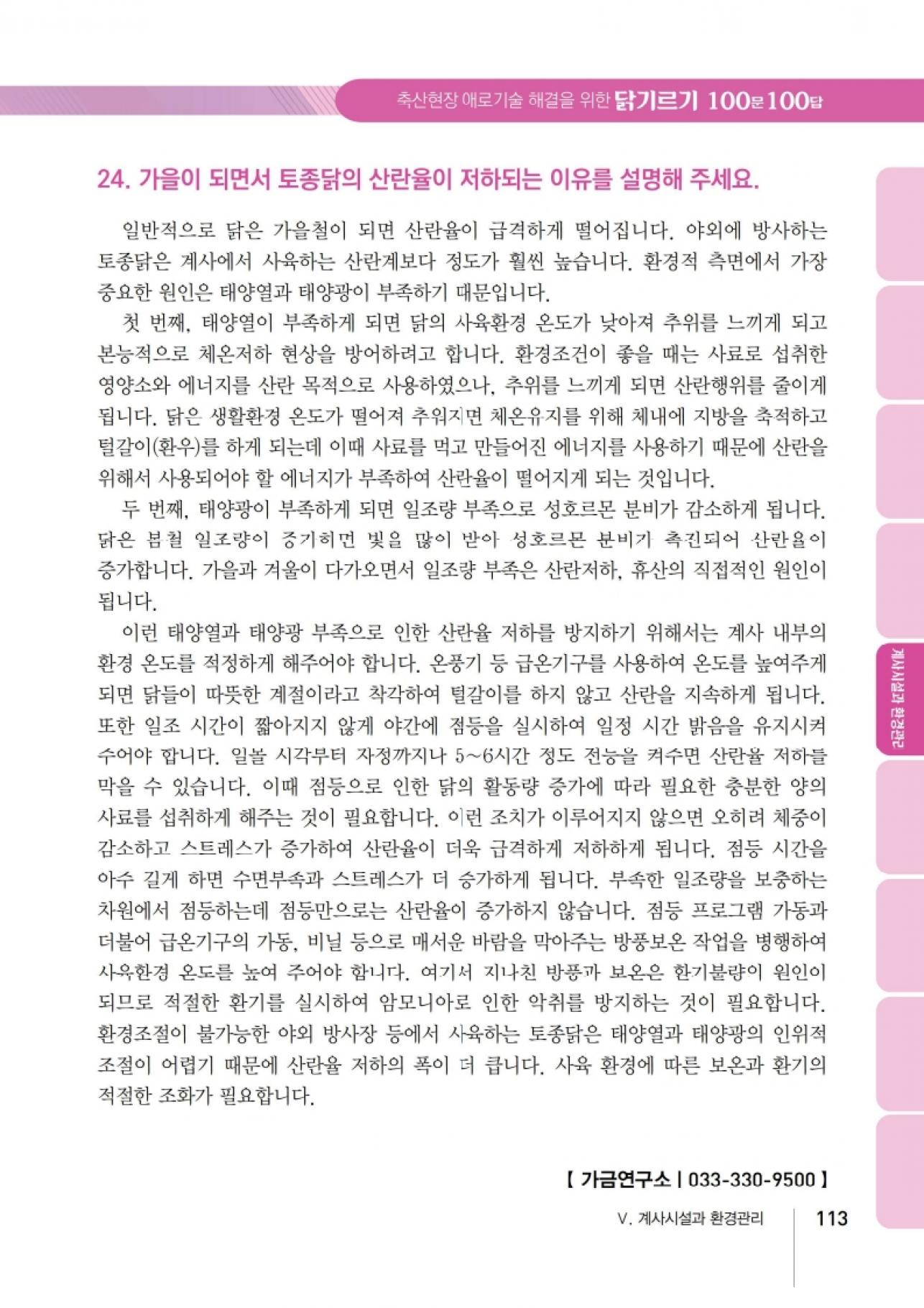 가을철 산란율 저하의 원인