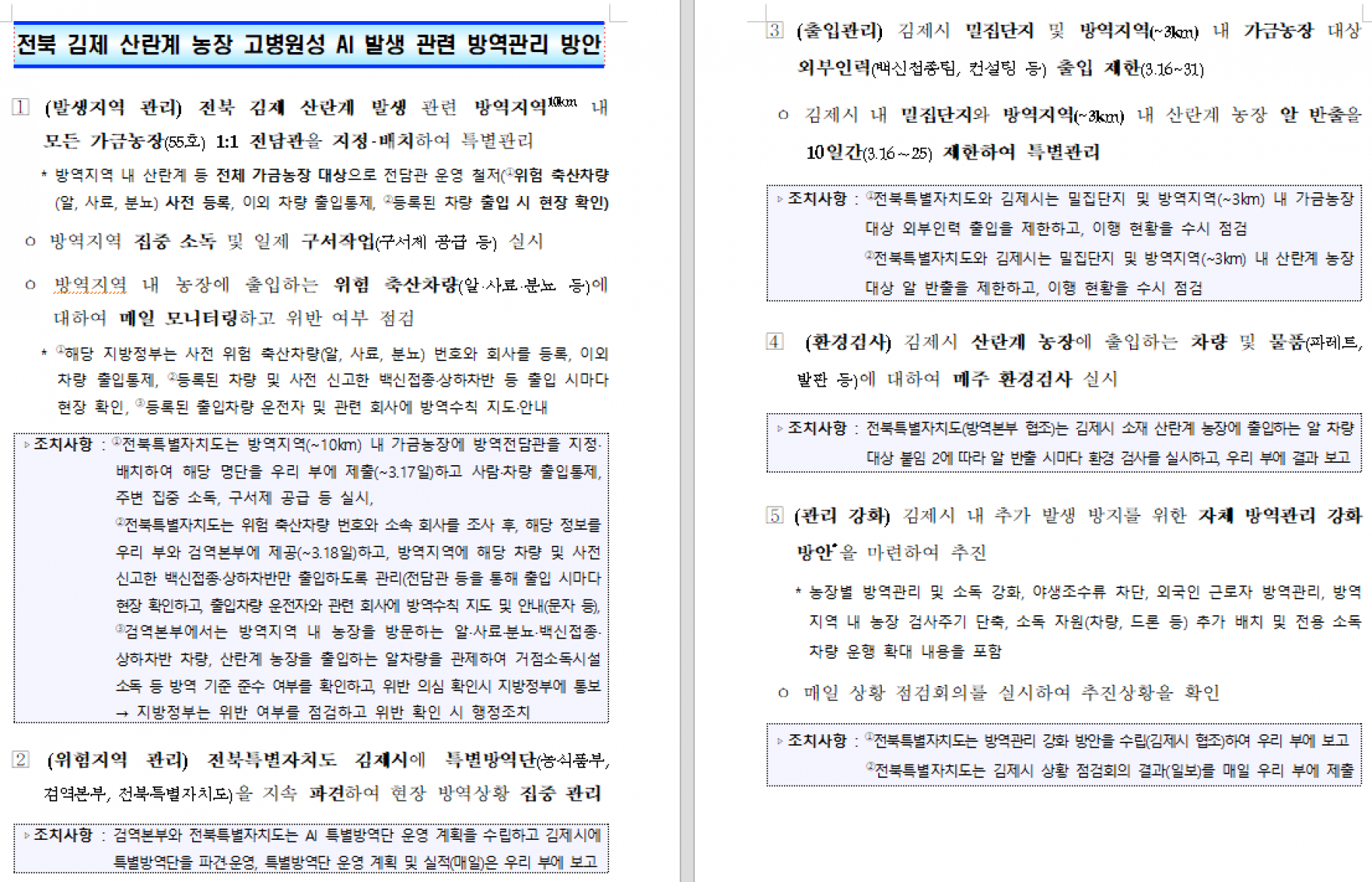 고병원성 조류인플루엔자 발생 관련 중앙사고수습본부 회의(3.16) 후속 조치 알림 |