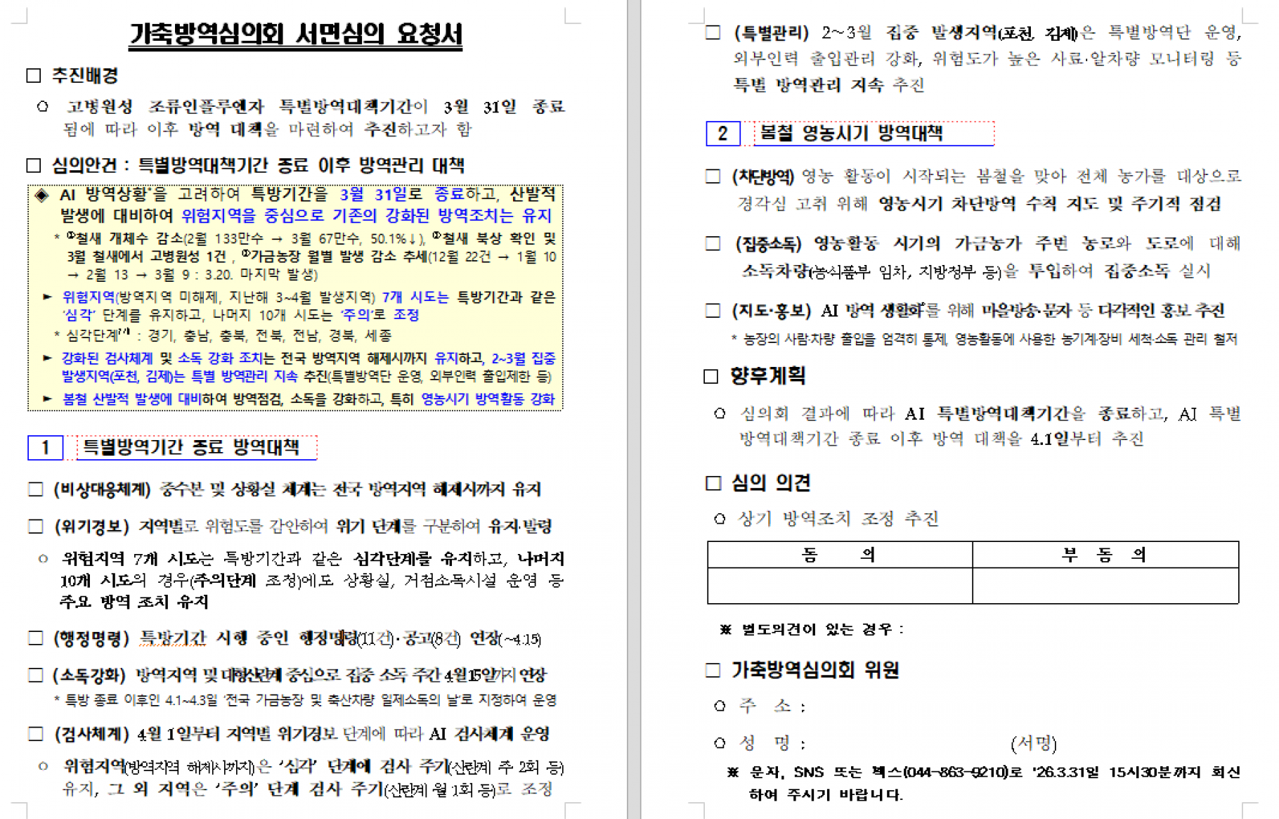 가축방역심의회(가금질병분과위) 서면심의 요청 |