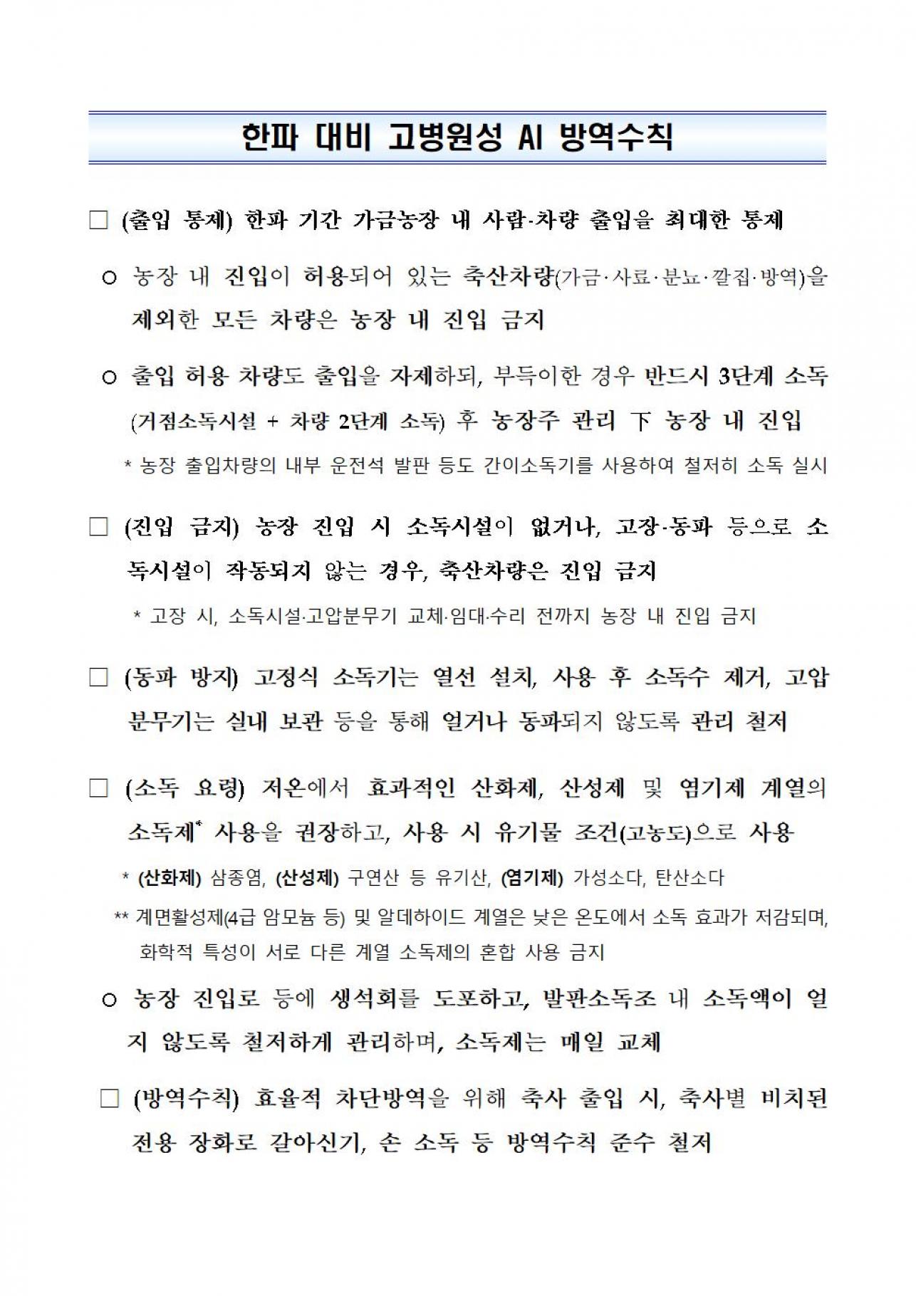 [기온하강 및 강설 대비 조류인플루엔자 방역수칙 전파]