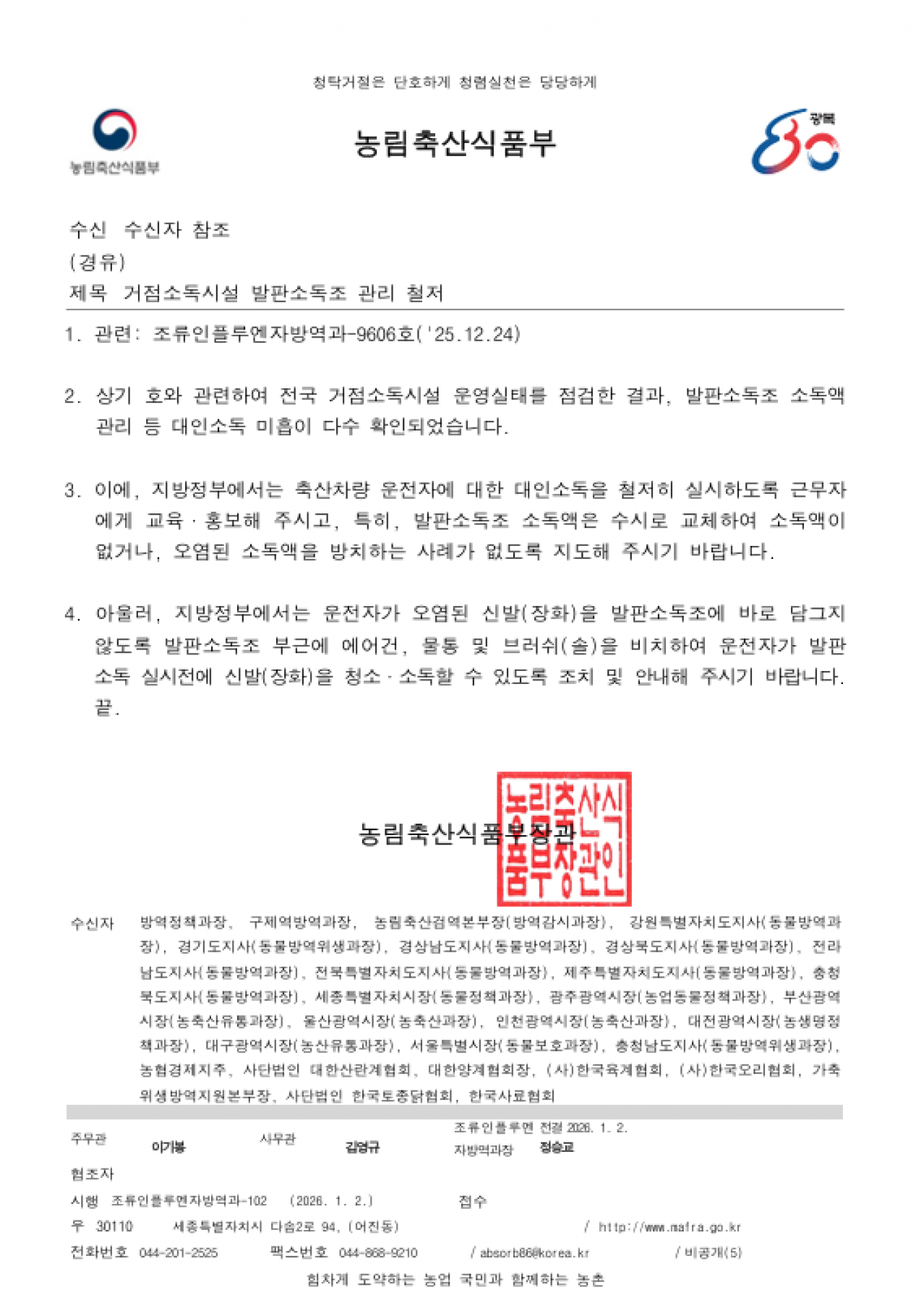 대한산란계협회 홈페이지 회원에게 무차별적으로 보내지는 메일을 차단하기 위해, 본 웹사이트에 게시된 이메일 주소가 전자우편 수집 프로그램이나 그 밖의 기술적 장치를 이용하여 무단으로 수집되는 것을 거부하며, 이를 위반시 정보통신망법에 의해 형사처벌됨을 유념하시기 바랍니다.