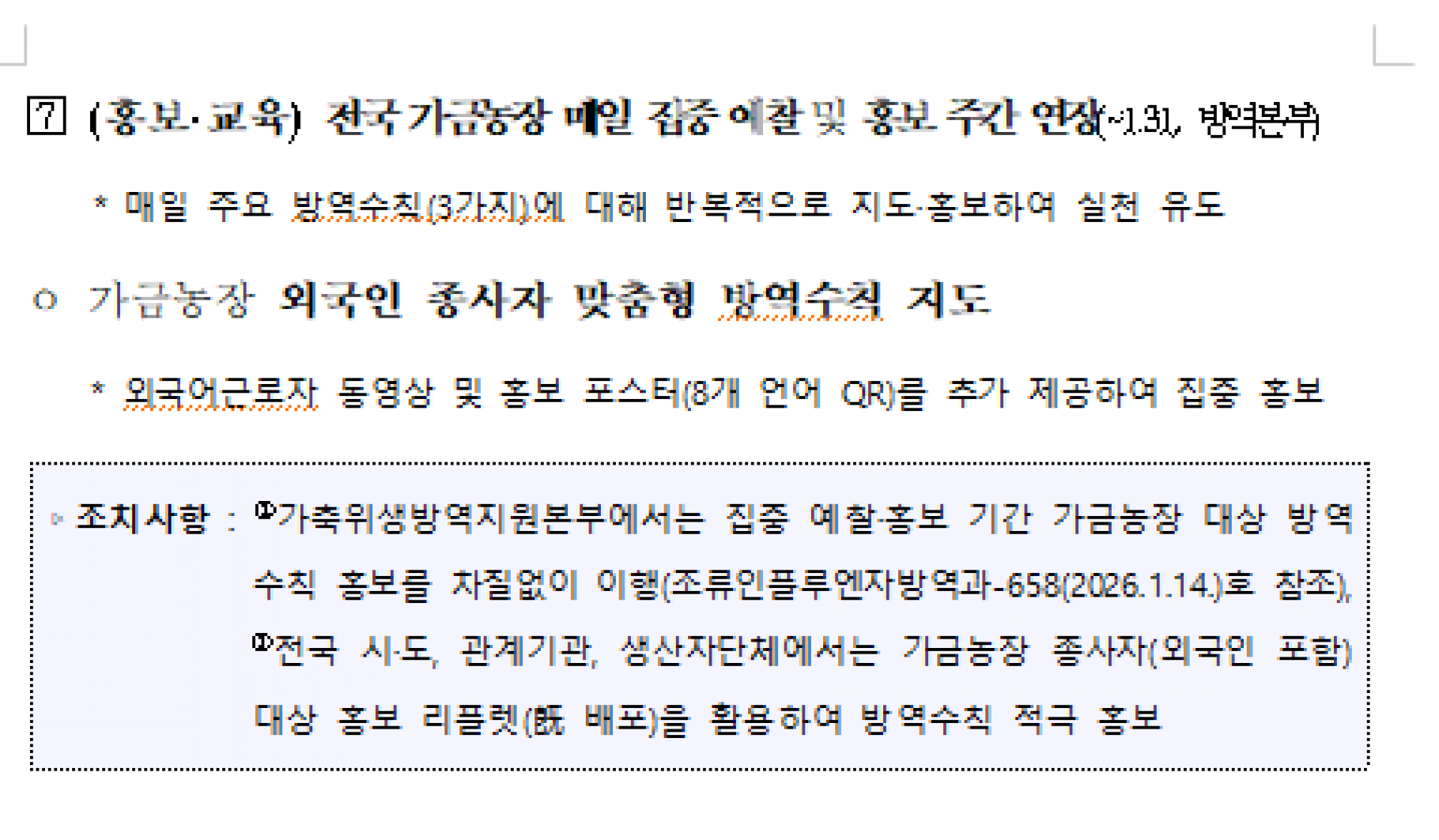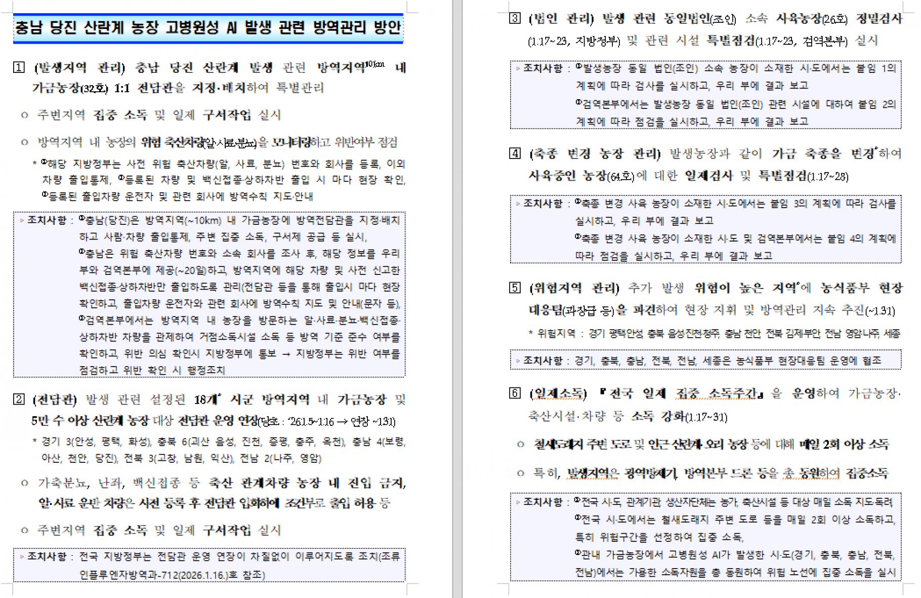 고병원성 조류인플루엔자 발생 관련 중앙사고수습본부 회의(1.16) 후속 조치 알림