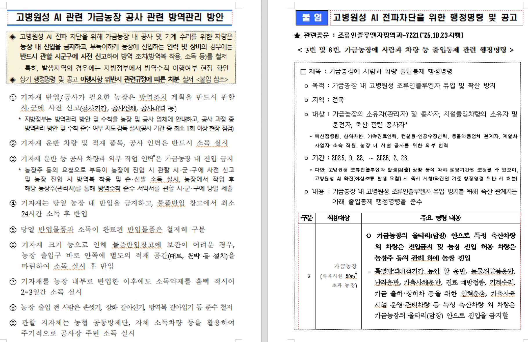 고병원성 조류인플루엔자 발생 관련 중앙사고수습본부 회의(1.17) 후속 조치 알림