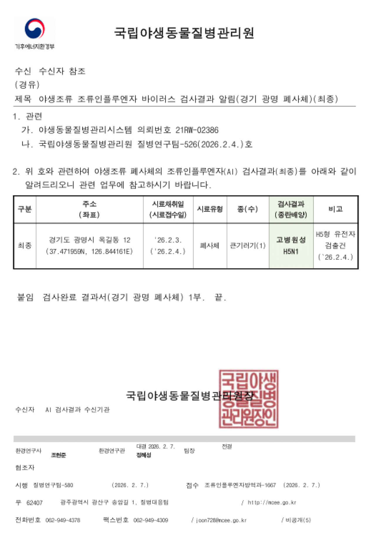 야생조류 고병원성 조류인플루엔자(H5N1형) 검출에 따른 차단방역 강화 알림