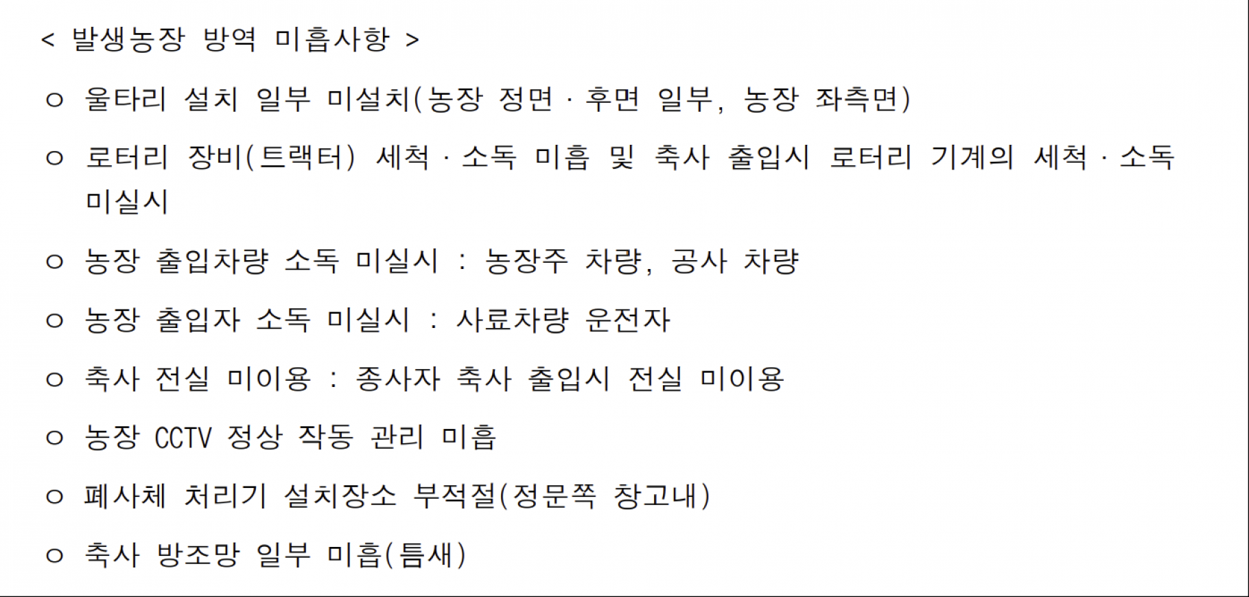 고병원성 AI 발생 미흡사항 전파 및 가금농장 방역수칙 준수 요청 |