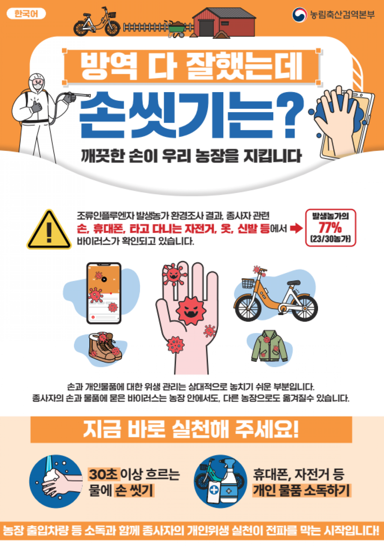 가금농장 종사자(외국인 포함) 차단방역 수칙 알림 및 교육·홍보 등 조치