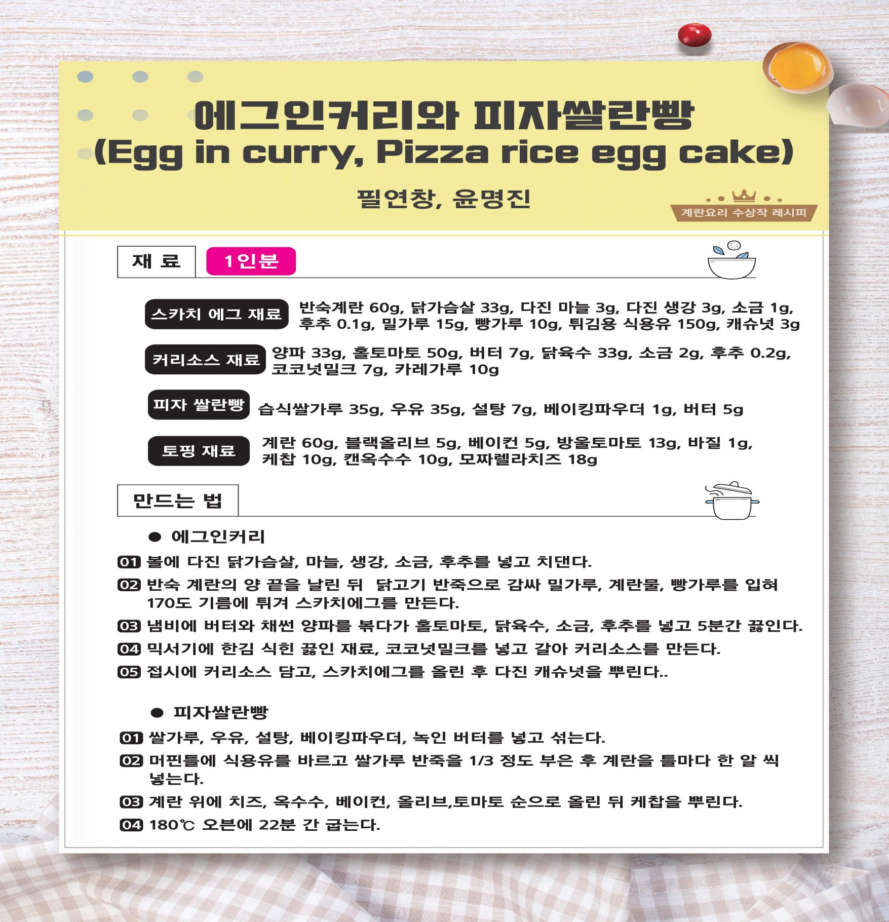 에그인커리와 피자쌀란빵(Egg in curry, Pizza rice eg