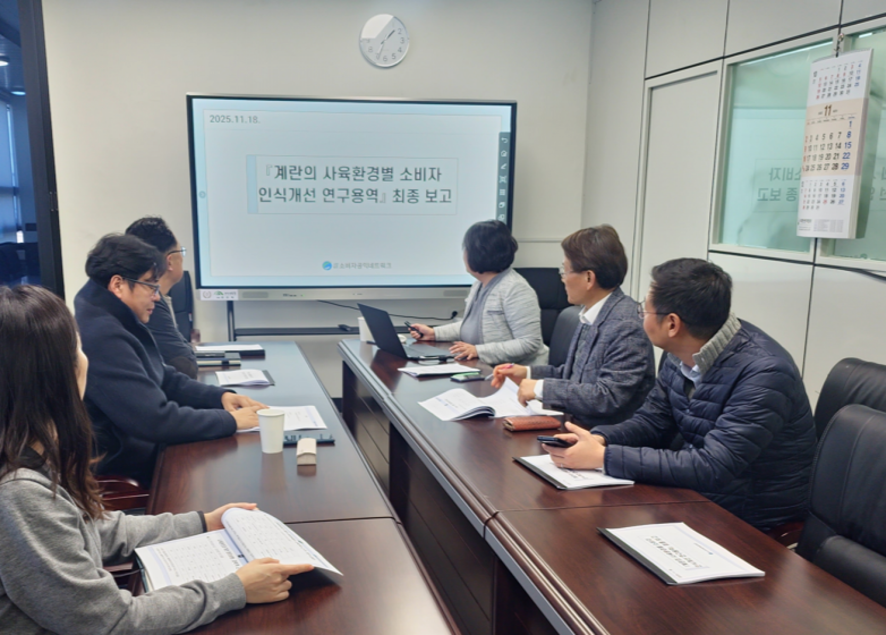 ![]() ![]() ![]() 우리 협회(회장 안두영)는 지난 11월 18일 협회 회의실에서 25년도 연구용역 3개 과제에 대한 최종 보고회를 개최하였다. 25년도 협회 연구용역 과제로는 1) 계란의 사육환경별 인식 개선(수행기관: 소비자공익네트워크) 2)산란계 살처분보상금 평가 기준 설정(수행기관: 충남대학교) 3) 산란계 성계육 및 계분 수출 방안 연구(수행기관: 경상대학교)를 진행하고 있다. |