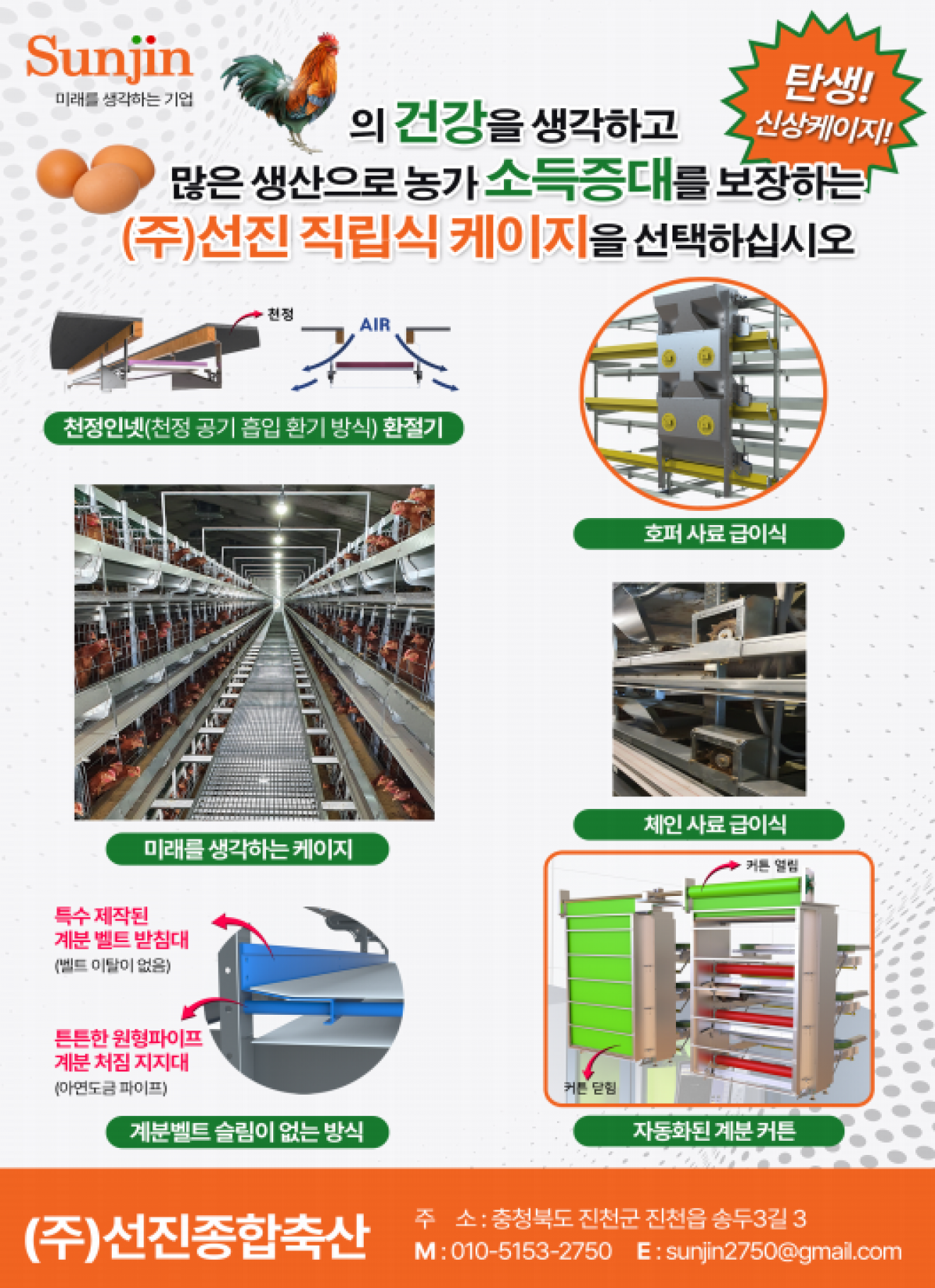 제품특징 닭의 건강을 생각하고 계란을 많이 생산하여 농가 소득증대를 보장하는 선진직립식 케이지를 선