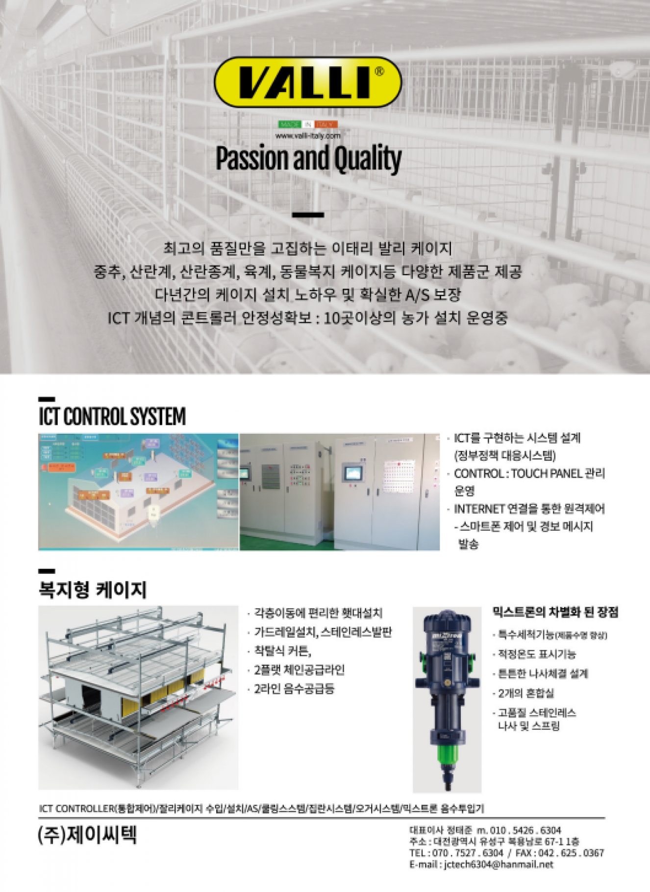 제품특징 최고의 품질만을 고집하는 이태리 발리케이지! 중추, 산란계, 산란종계, 육계, 동물복지 케이지 등 다양한 제품군 제공! 다년간의 케이지 설치 노하우 및 확실한 A/S보장!