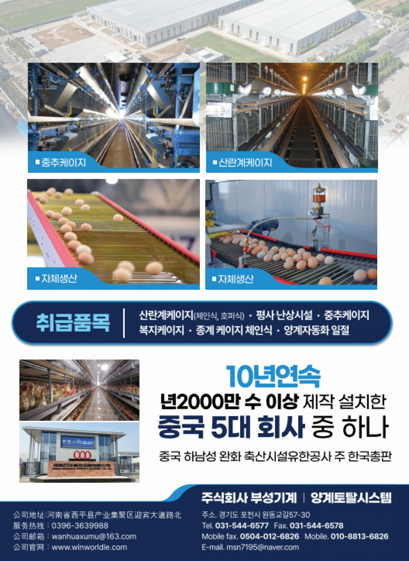 제품특징 산란계케이지, 평가 난상시설, 충추케이지, 복지케이지, 종계케이지체인식, 양계자동화 일절