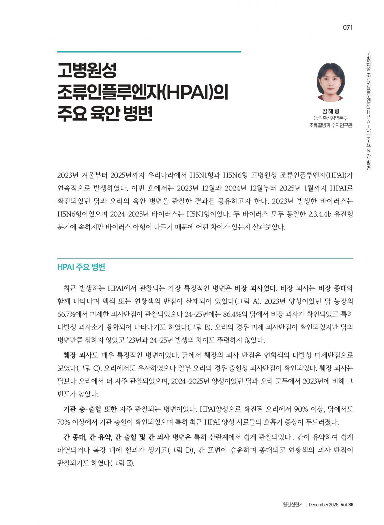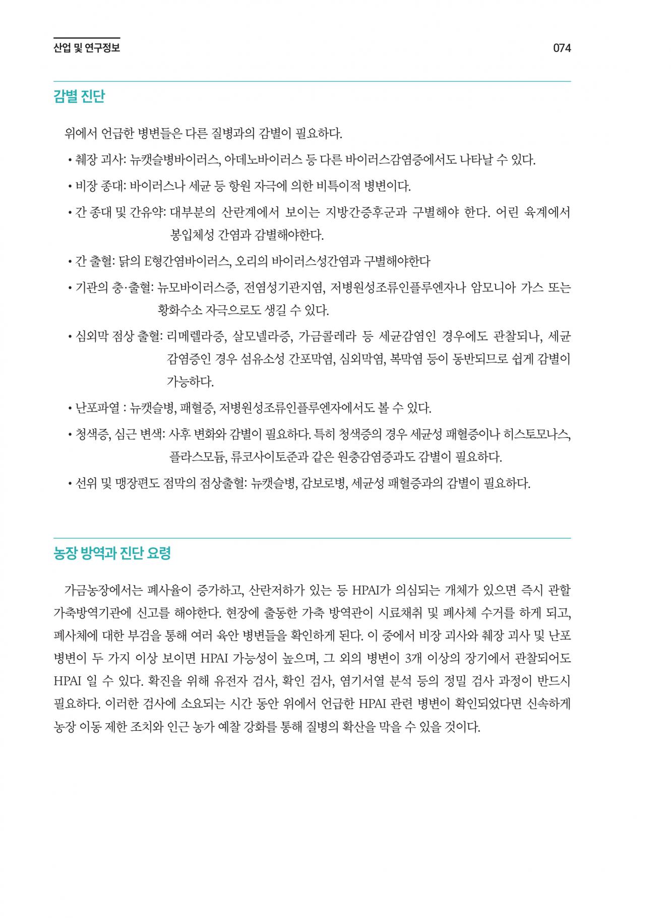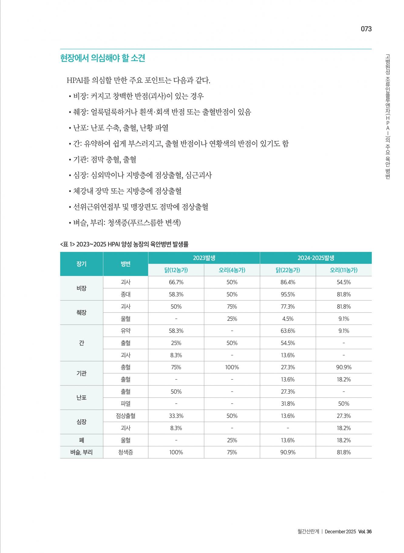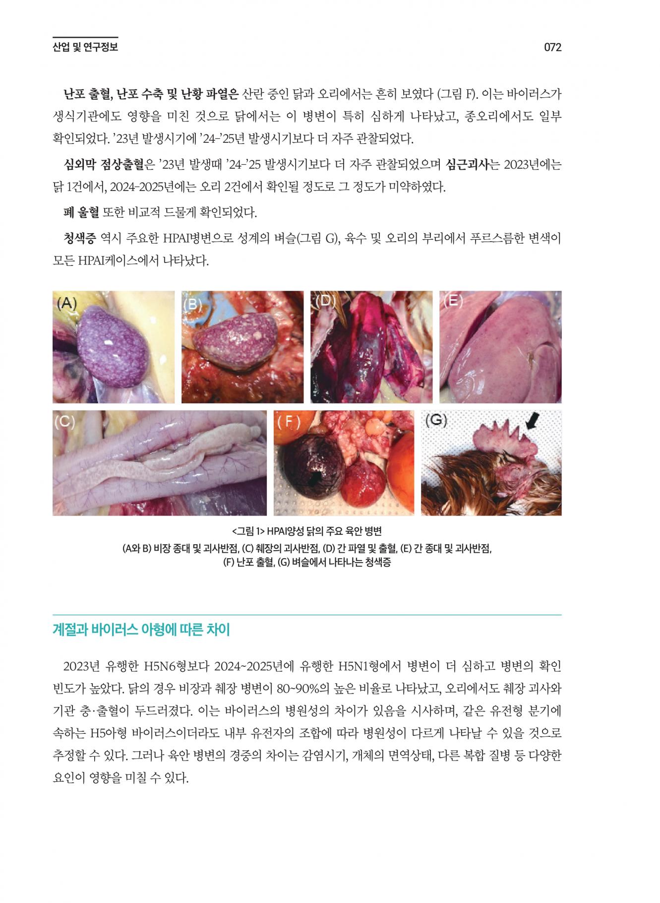 고병원성 조류인플루엔자(HPAI)의 주요 육안 병변