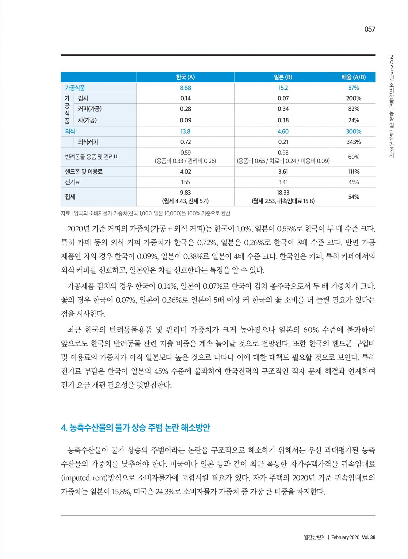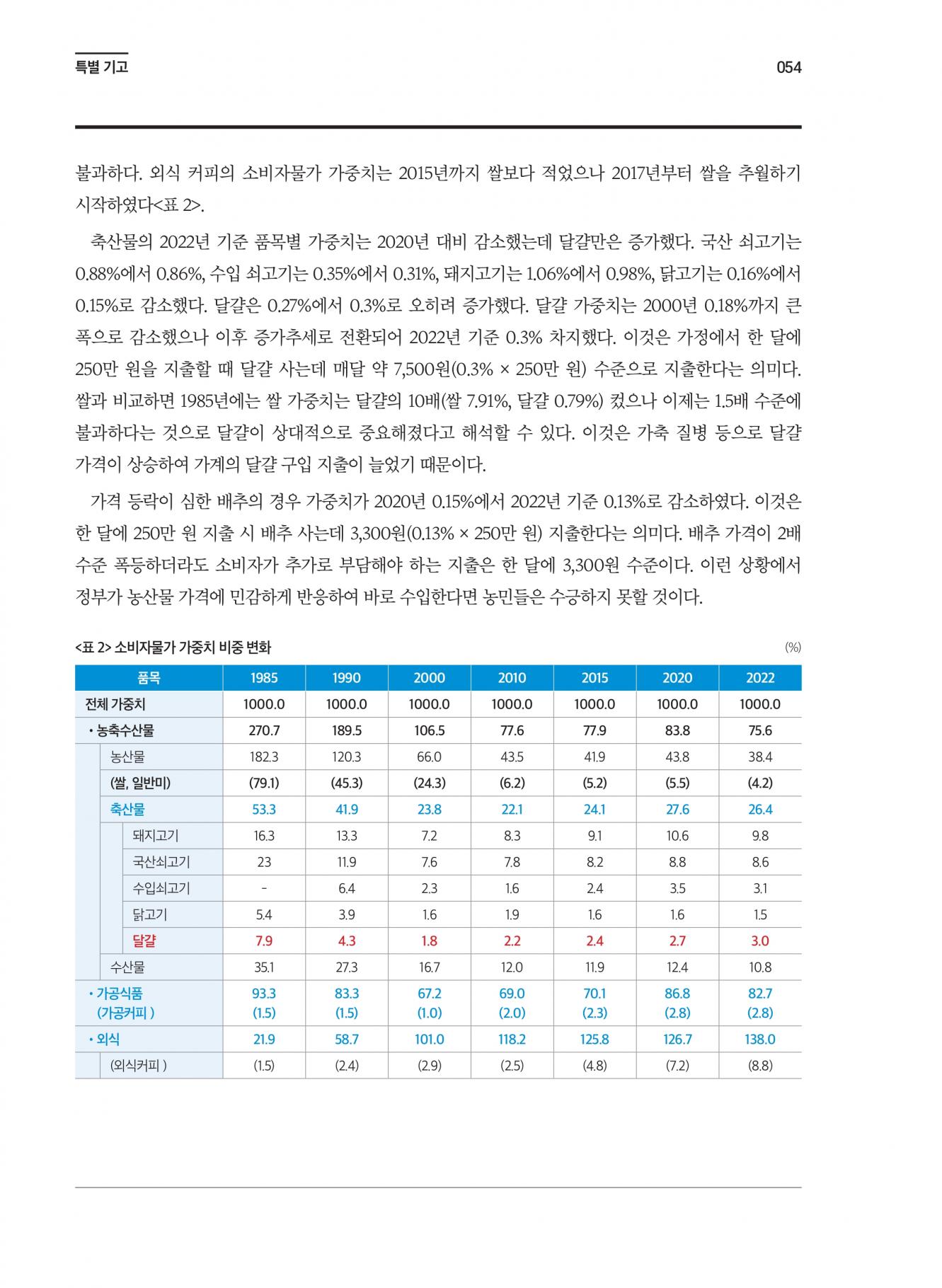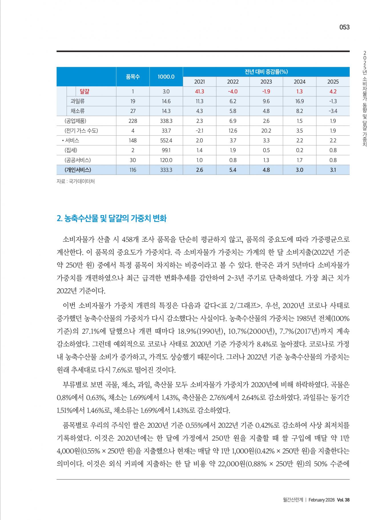 2025년 소비자물가 동향 및 달걀 가중치 |