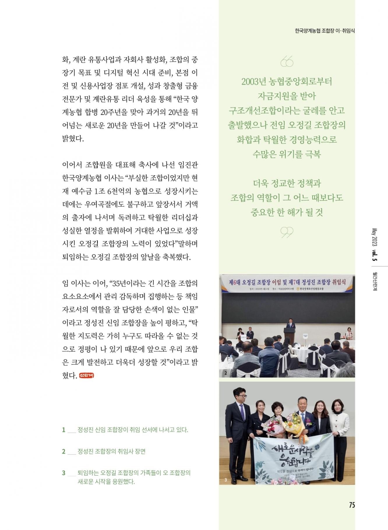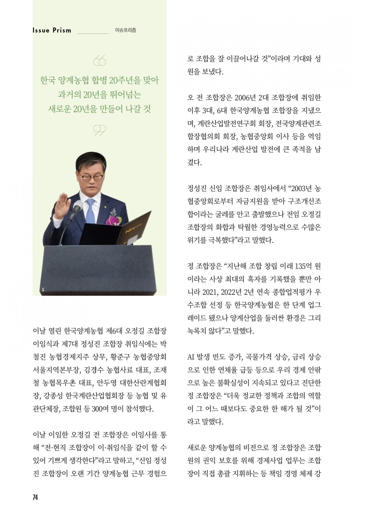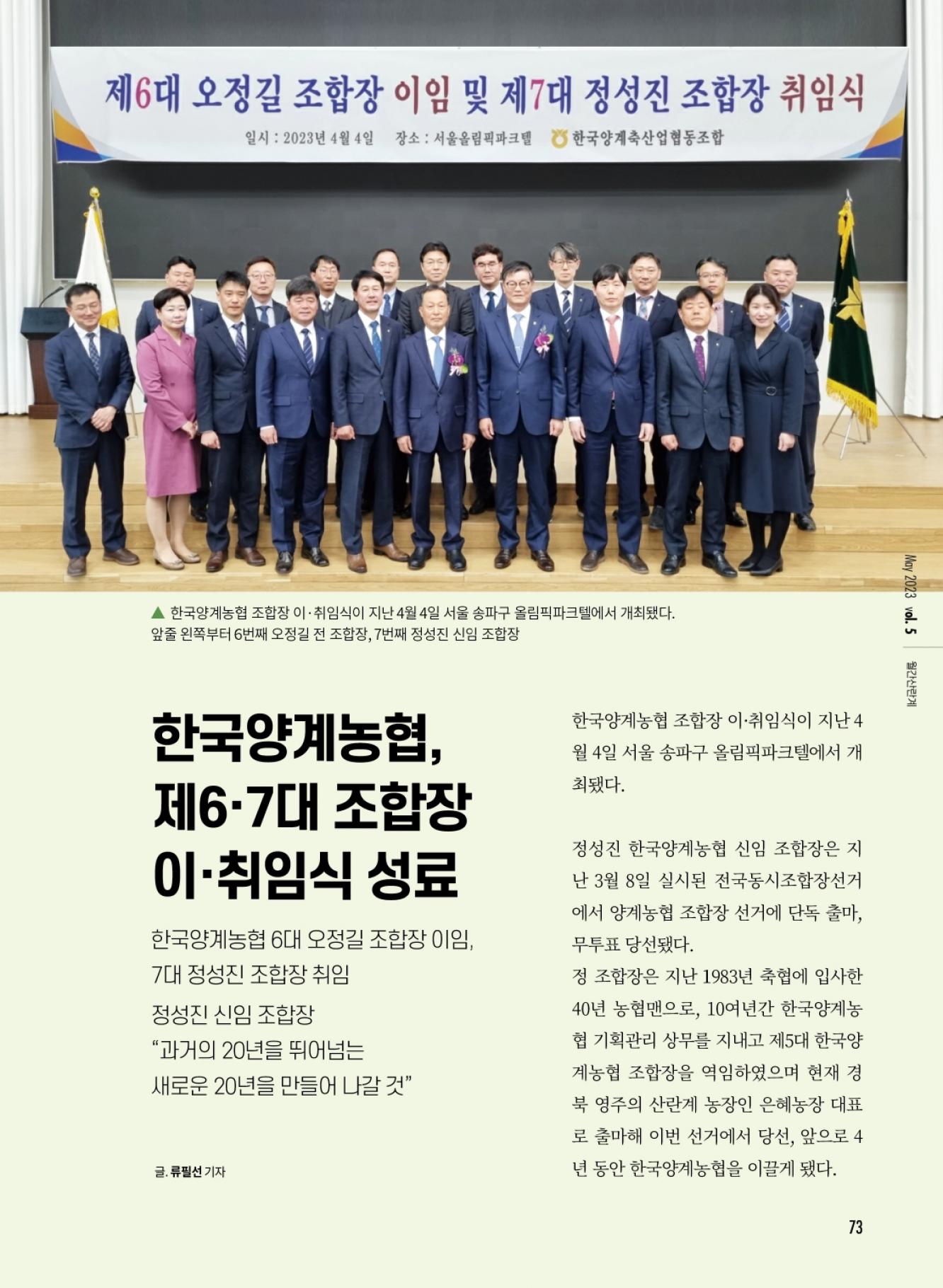 한국양계농협, 제6·7대 조합장 이·취임식 성료