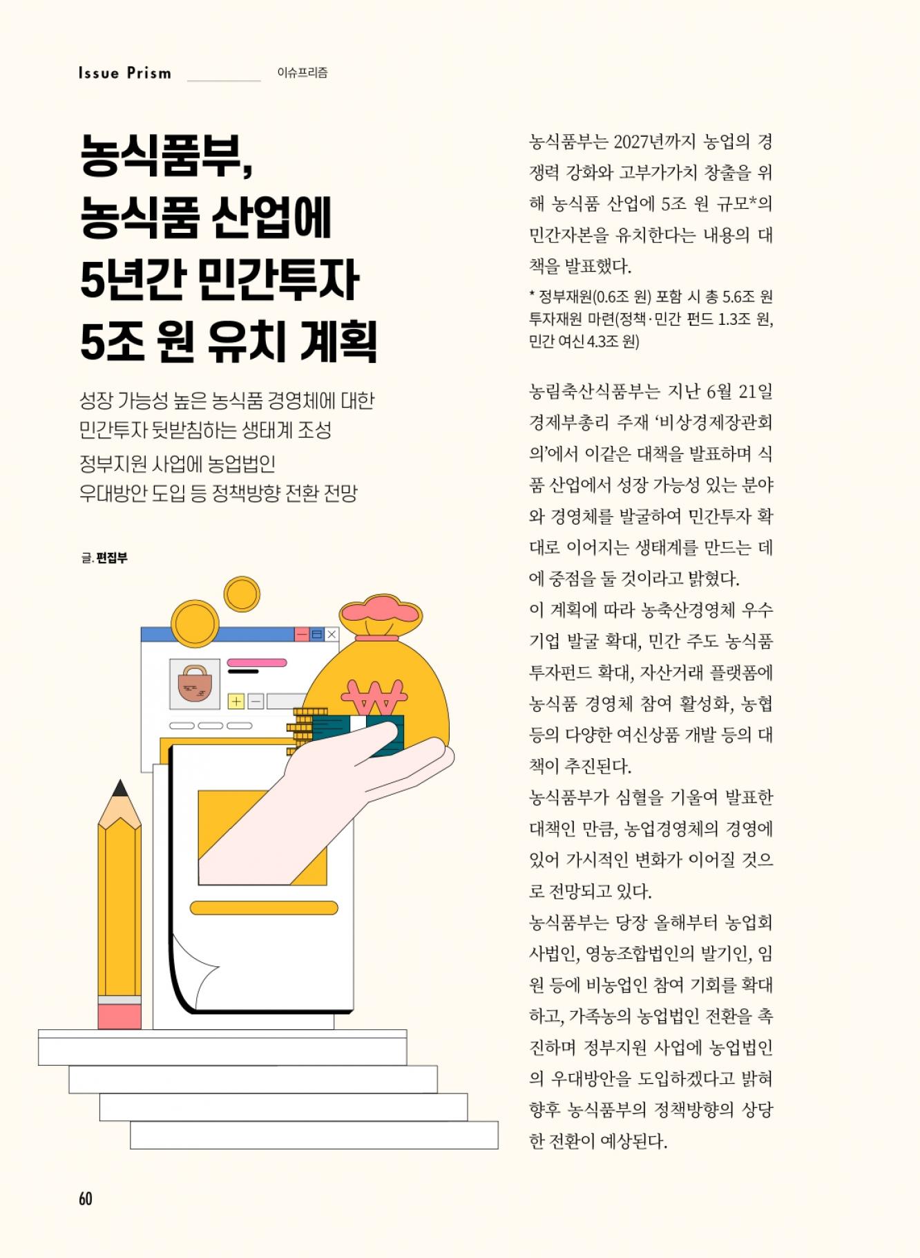 농식품부, 농식품 산업에 5년간 민간투자 5조원 유치계획