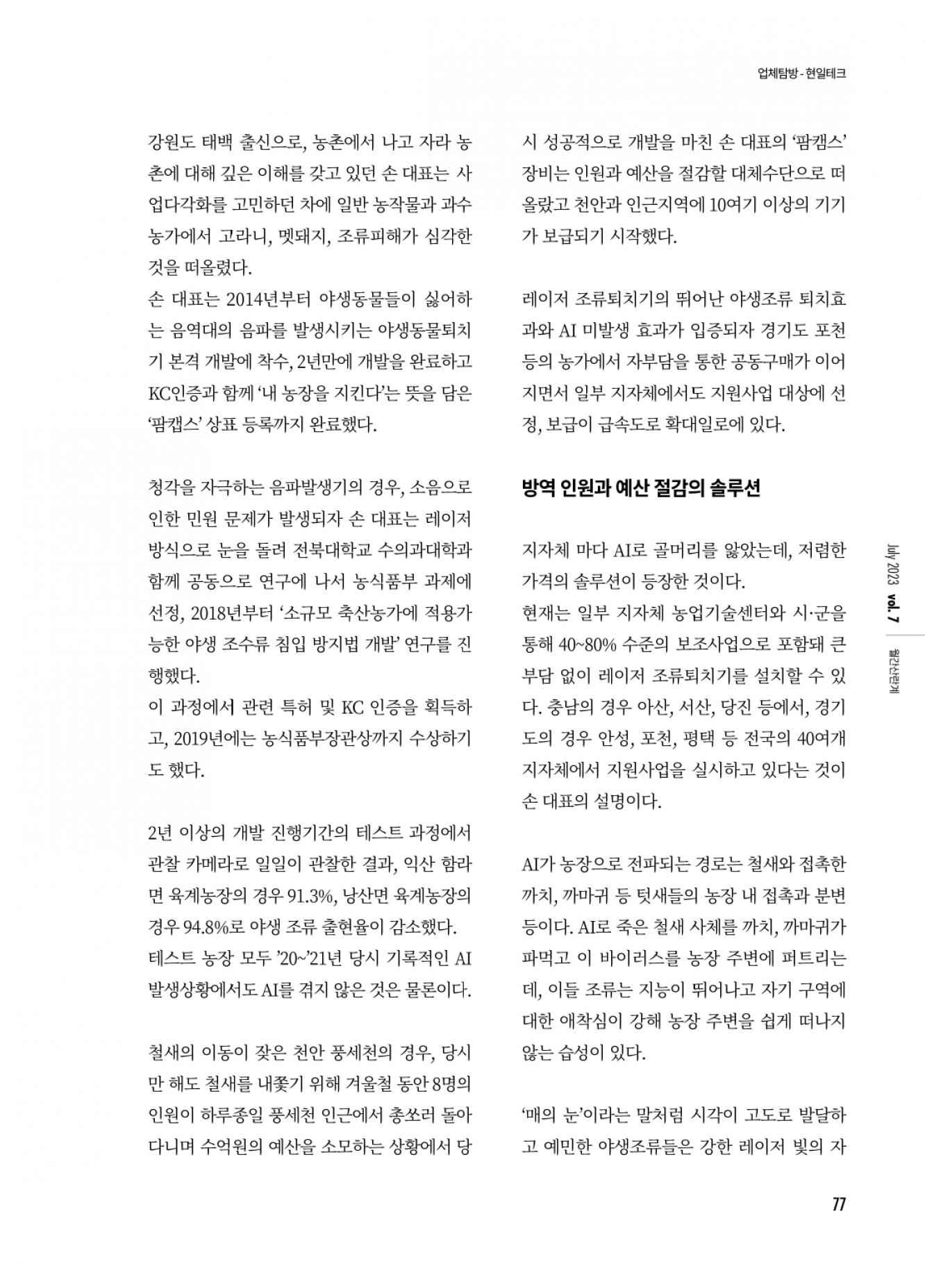 [업체탐방/현일테크]레이저 조류퇴치기로 AI피해 예방
