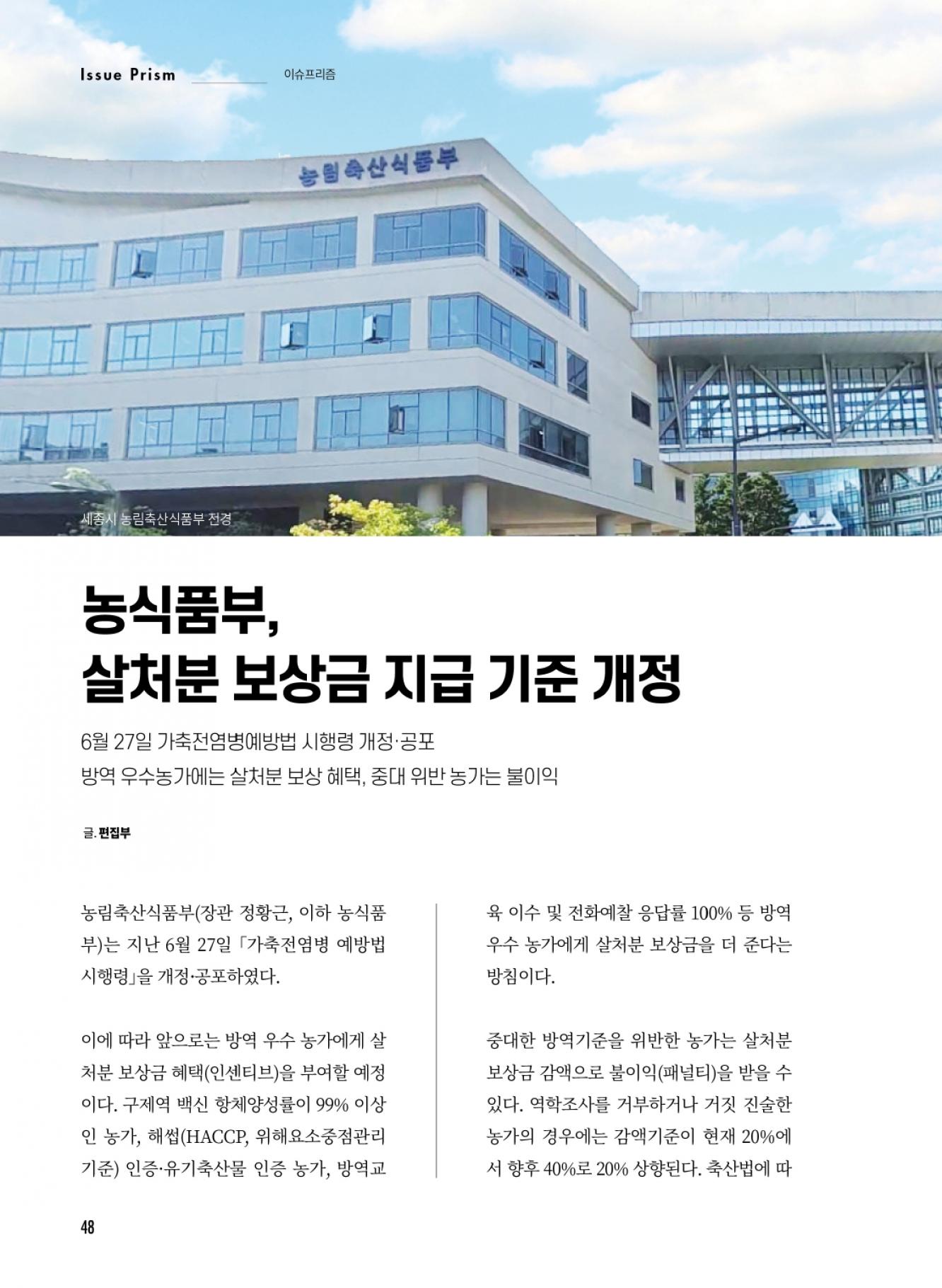 농식품부, 살처분 보상금 지급 기준 개정