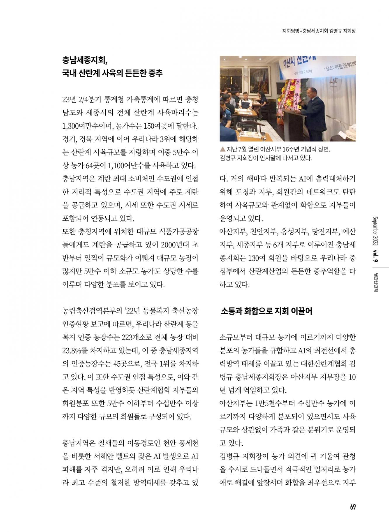 [지회탐방/충남세종지회]후세들이 안정적으로 양계 사업을 펼칠 수 있도록 역할 다할 것