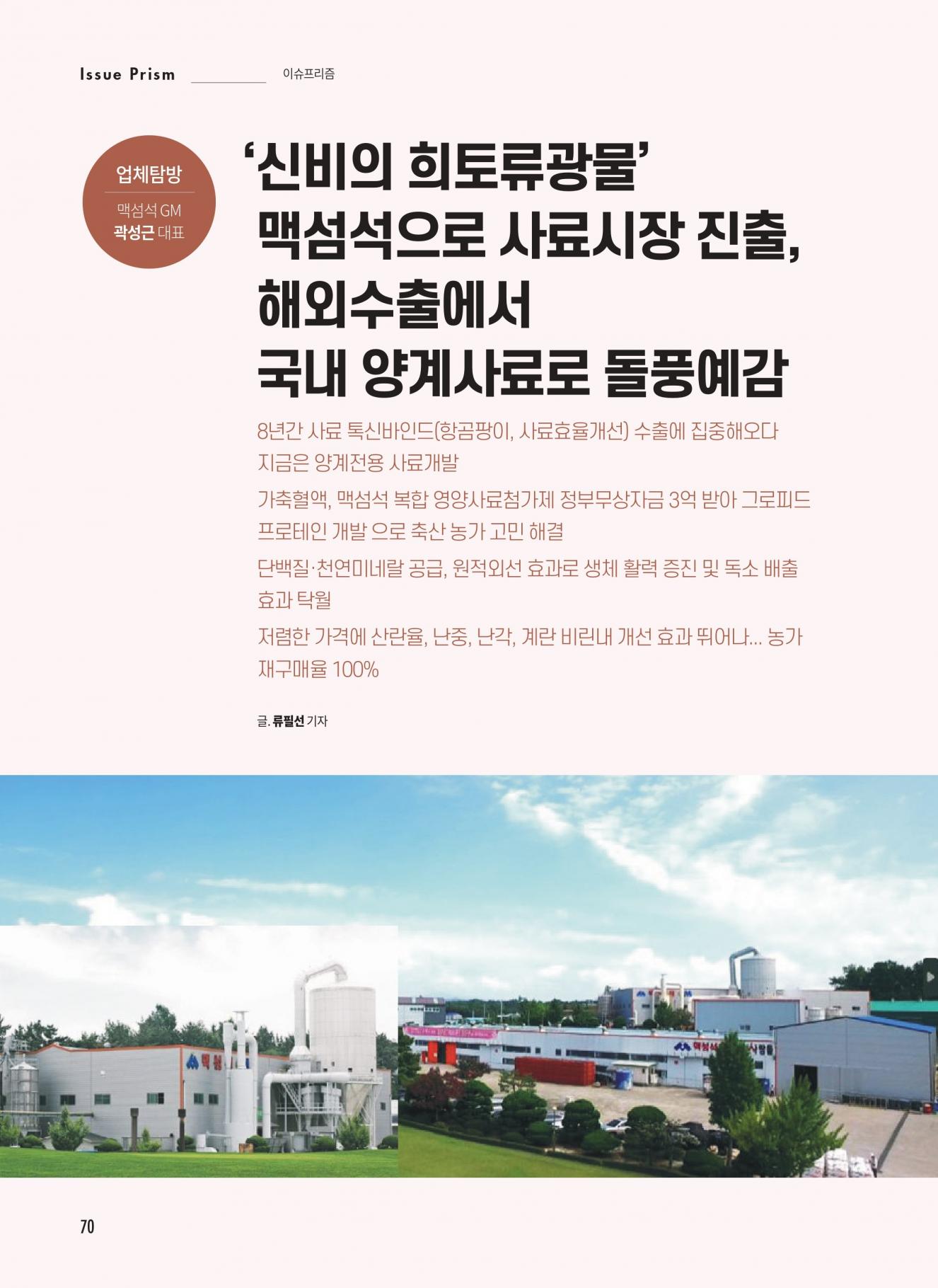 [업체탐방/맥섬석GM]'신비의 희토류광물' 맥섬석으로 사료시장 진출, 해외수출에서 국내 양계사료로 돌풍예감