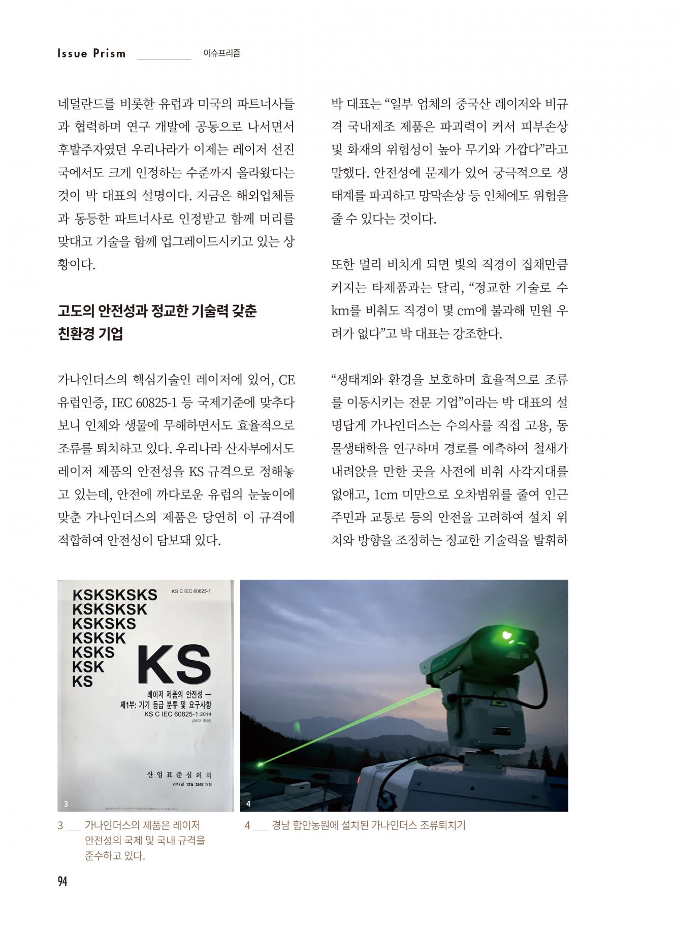 [업체탐방/가나인더스]국제규격 안전성 갖춘 레이저 조류퇴치 전문기업