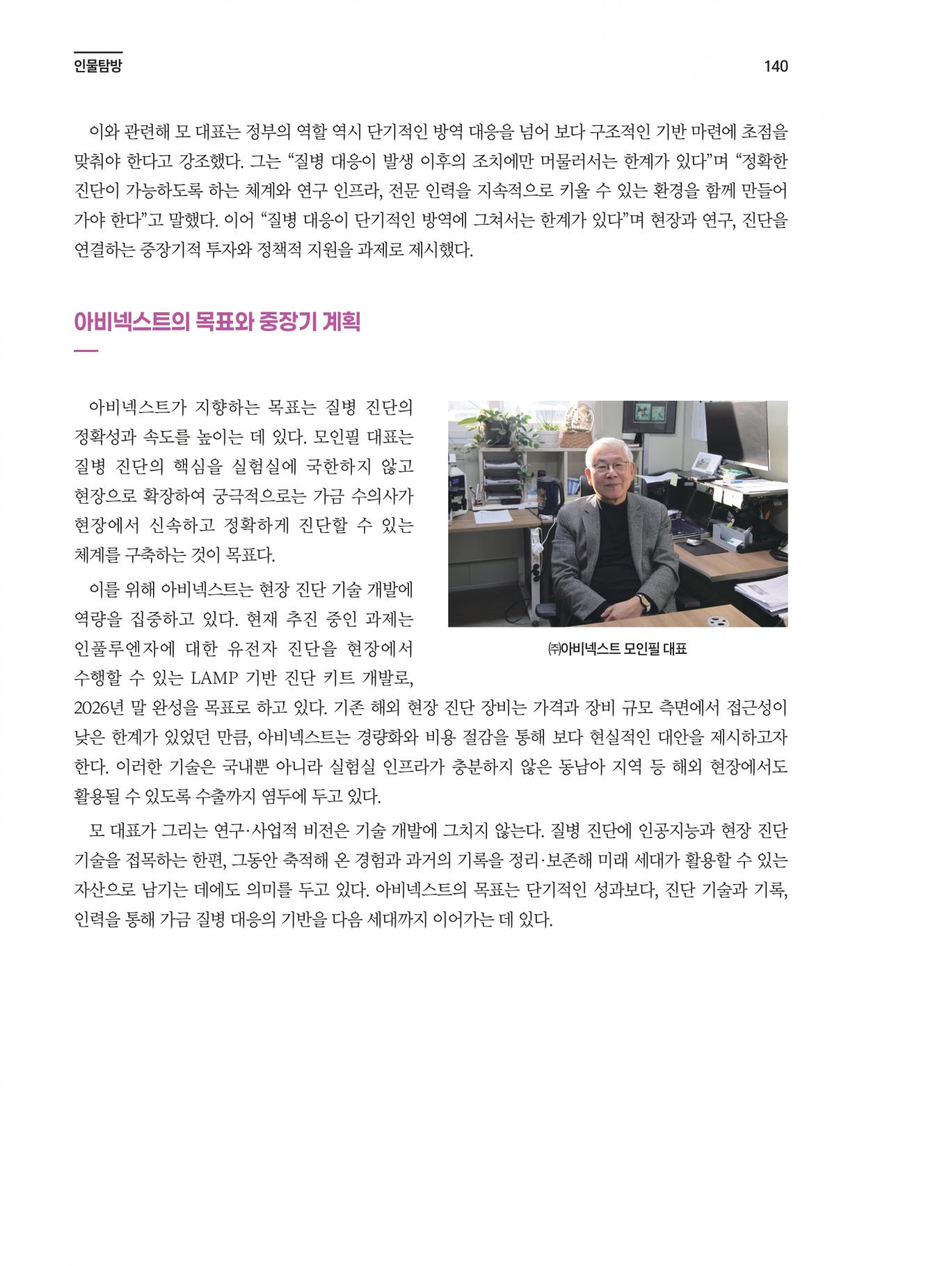 [인물탐방] 질병의 변화를 읽고, 산업의 내일을 준비하다 (주)아비넥스트 모인필 대표