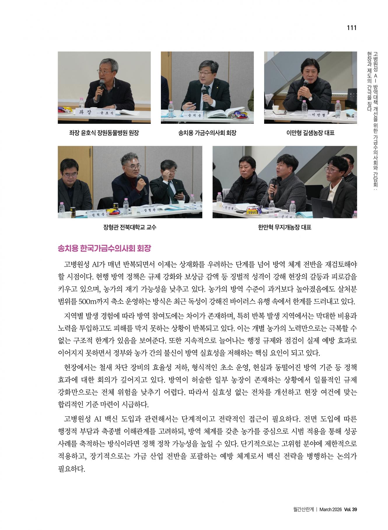 고병원성 AI 방역대책 개선을 위한 가금수의사회와 간담회: 현장과 제도의 간극을 짚다 |