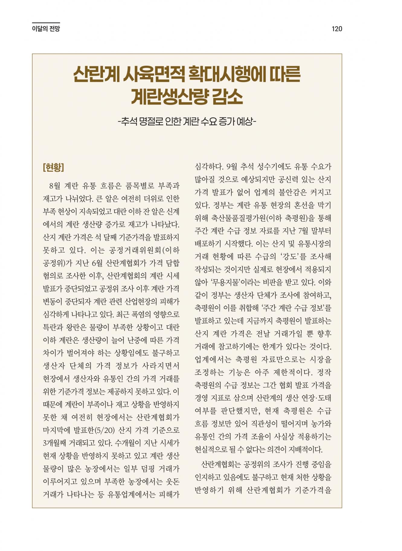 [이달의 전망] 산란계 사육면적 확대시행에 따른 계란생산량 감소