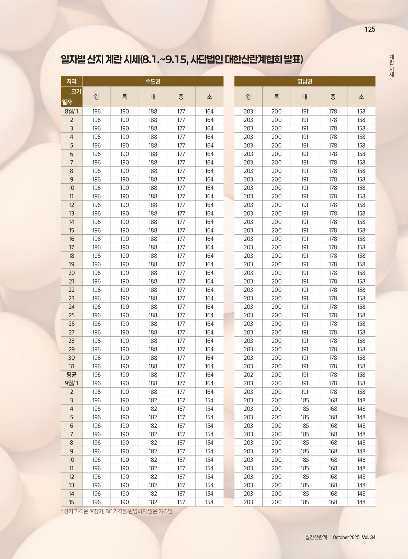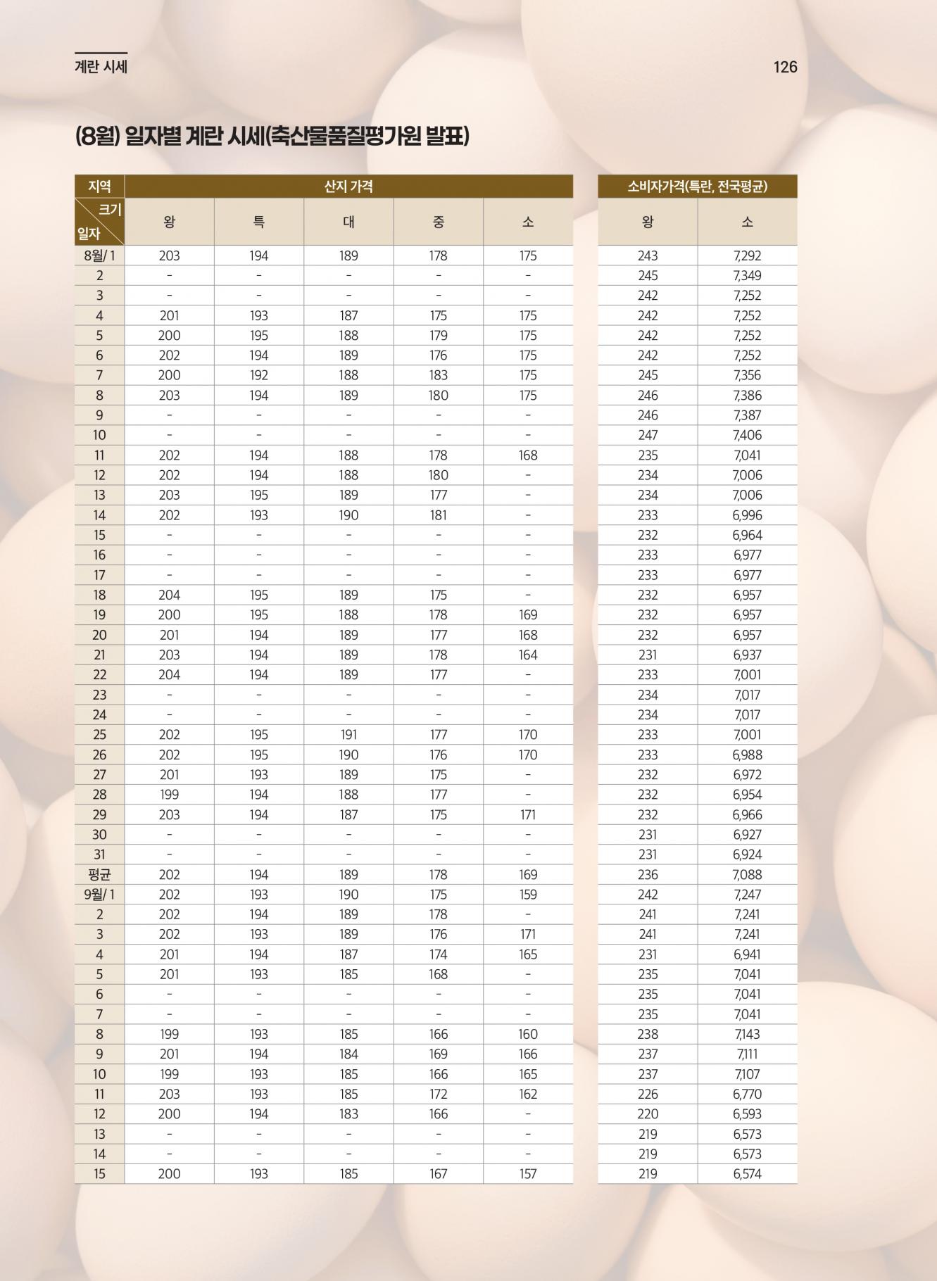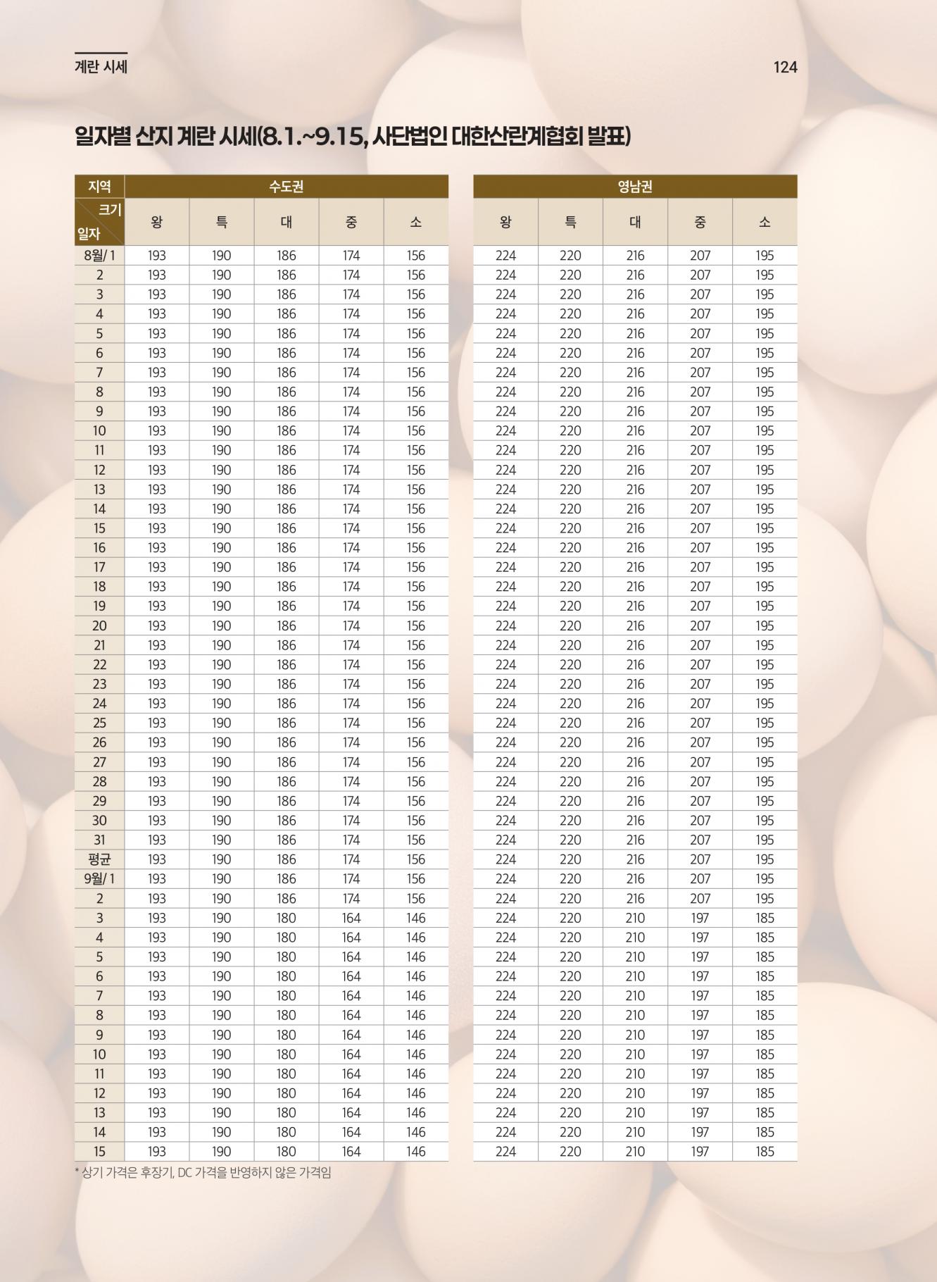 일자별 산지 계란 시세(8.1~9.15)