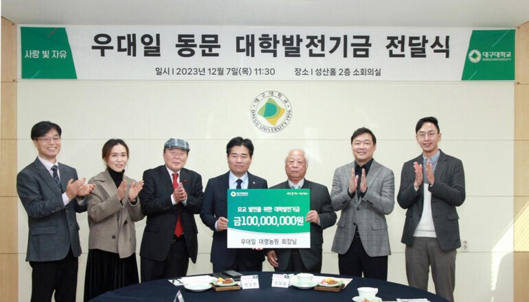 대영농원 우대일 회장, 대구대에 발전기금 1억원 기탁 |