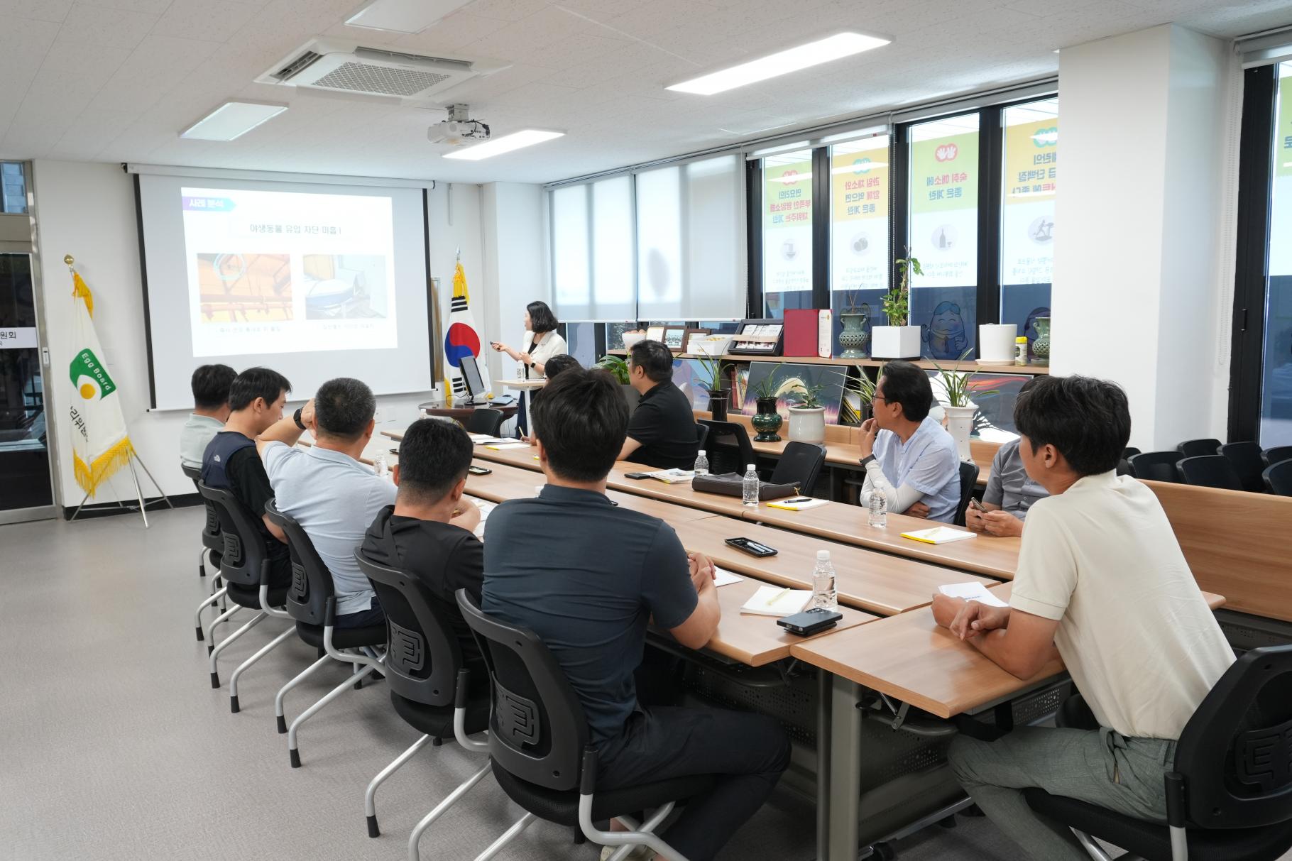 대한산란계협회 충북도지회(지회장 정준우)는 지난 7월 10일 충북도 동물방역과와 함께 오송에 위치한 계란자조금 사무실에서 간담회를 개최했다. 간담회에 앞서 ‘고병원성 AI 예방을 위한 산란계 농장의 차단 방역 관리 전략’을 주제로 강의를 진행하며 최근 방역 점검 사례와 관리 기준을 공유했다. 이어진 간담회에서는 드론 방역 지원, CCTV 및 울타리 설치 기준의 현실화, 방역 위반에 따른 보상 감액 기준 개선 등 다양한 현장 의견이 오갔다. 충북도지회 측은 “과도한 규제가 오히려 방역 효율을 떨어뜨릴 수 있다”며 실질적인 정책 개선을 요청했으며 도청 측은 “현장의 의견을 적극 반영해 제도 개선과 예산 지원을 검토하겠다”고 밝혔다. 이번 간담회는 충북도내 산란계 농가의 애로사항을 현장 중심으로 청취하고 정책 개선 가능성을 함께 모색하는 뜻깊은 자리였다. |