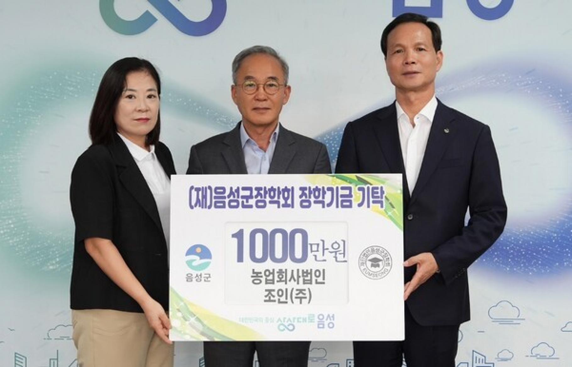 조인(주), 음성군 장학회에 1천만 원 기탁 |