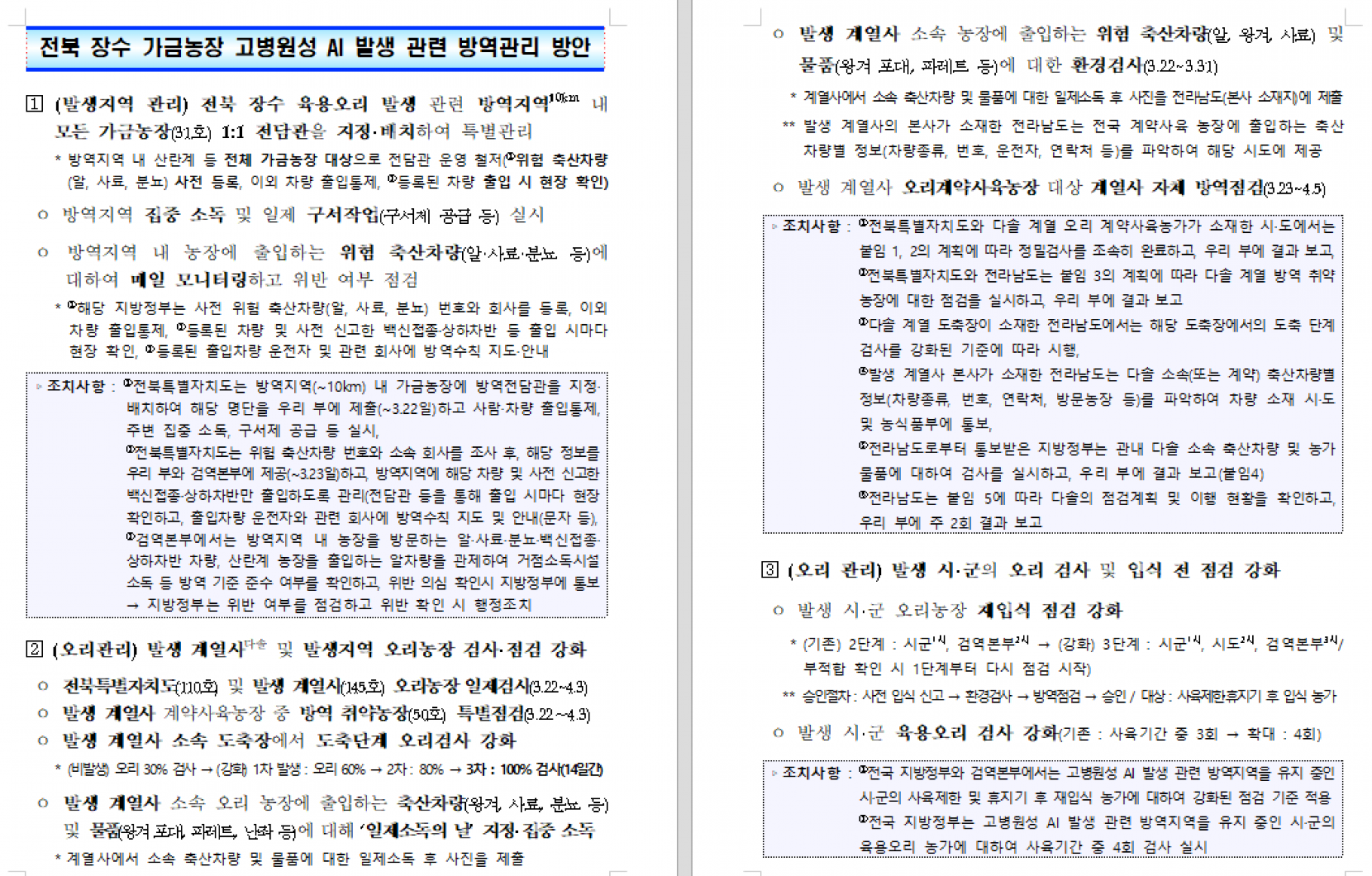 고병원성 조류인플루엔자 발생 관련 중앙사고수습본부 회의(3.21) 후속 조치 알림