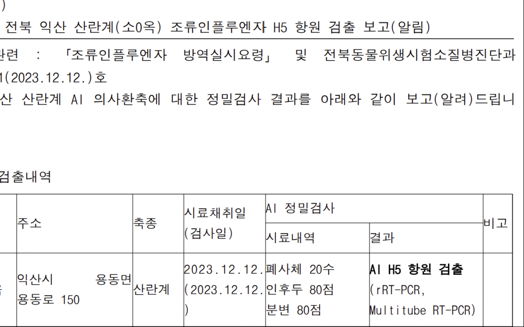 전북 익산시 가금농가(산란계) 고병원성 AI 의사환축 발생에 따른 방역강화 조치 |