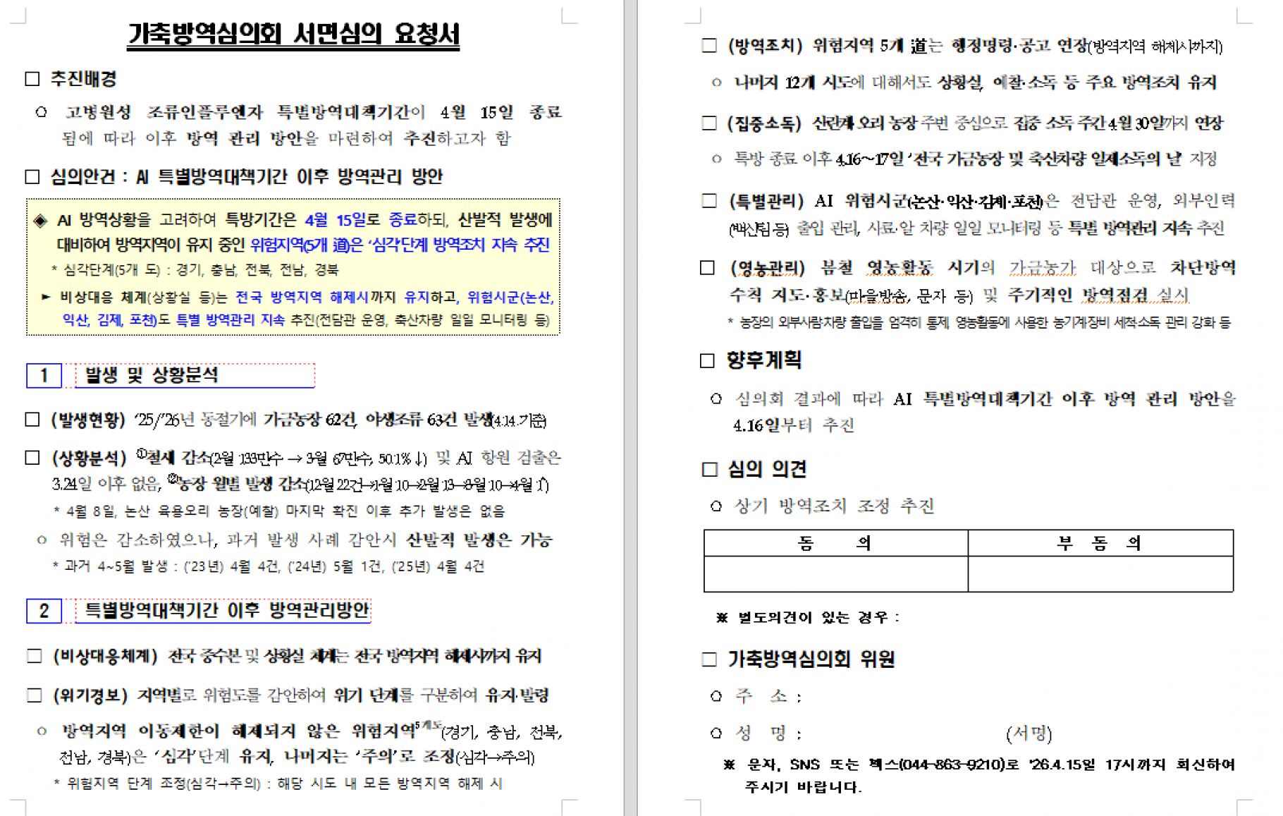 가축방역심의회(가금질병분과위) 서면심의 요청 |