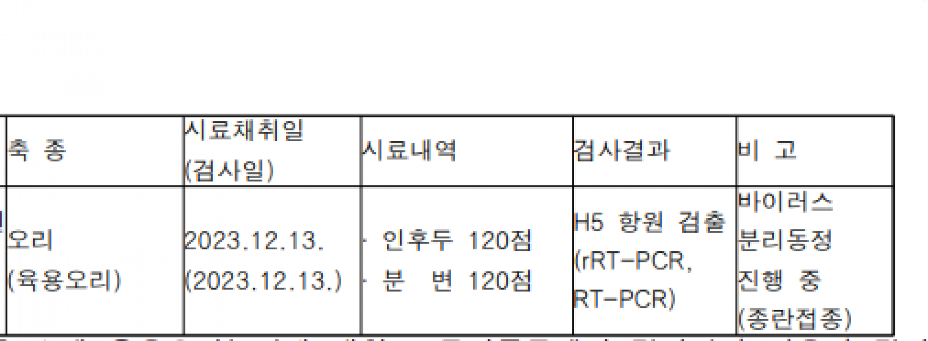 (전남 영암) 육용오리 조류인플루엔자 H5항원 검출 보고