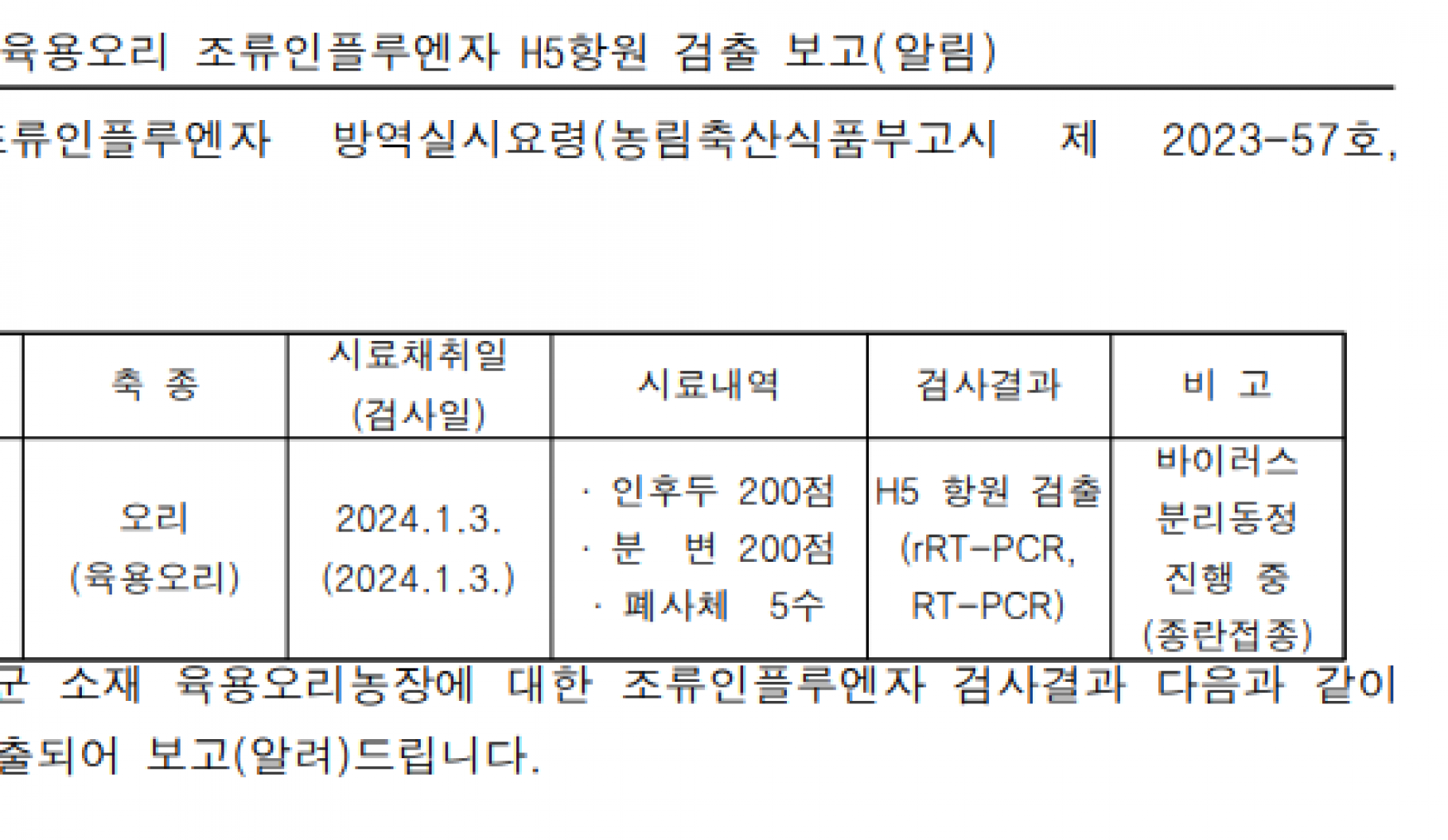 전남 무안 가금농장(육용오리) 고병원성 AI 의사환축 발생에 따른 방역강화 조치 |