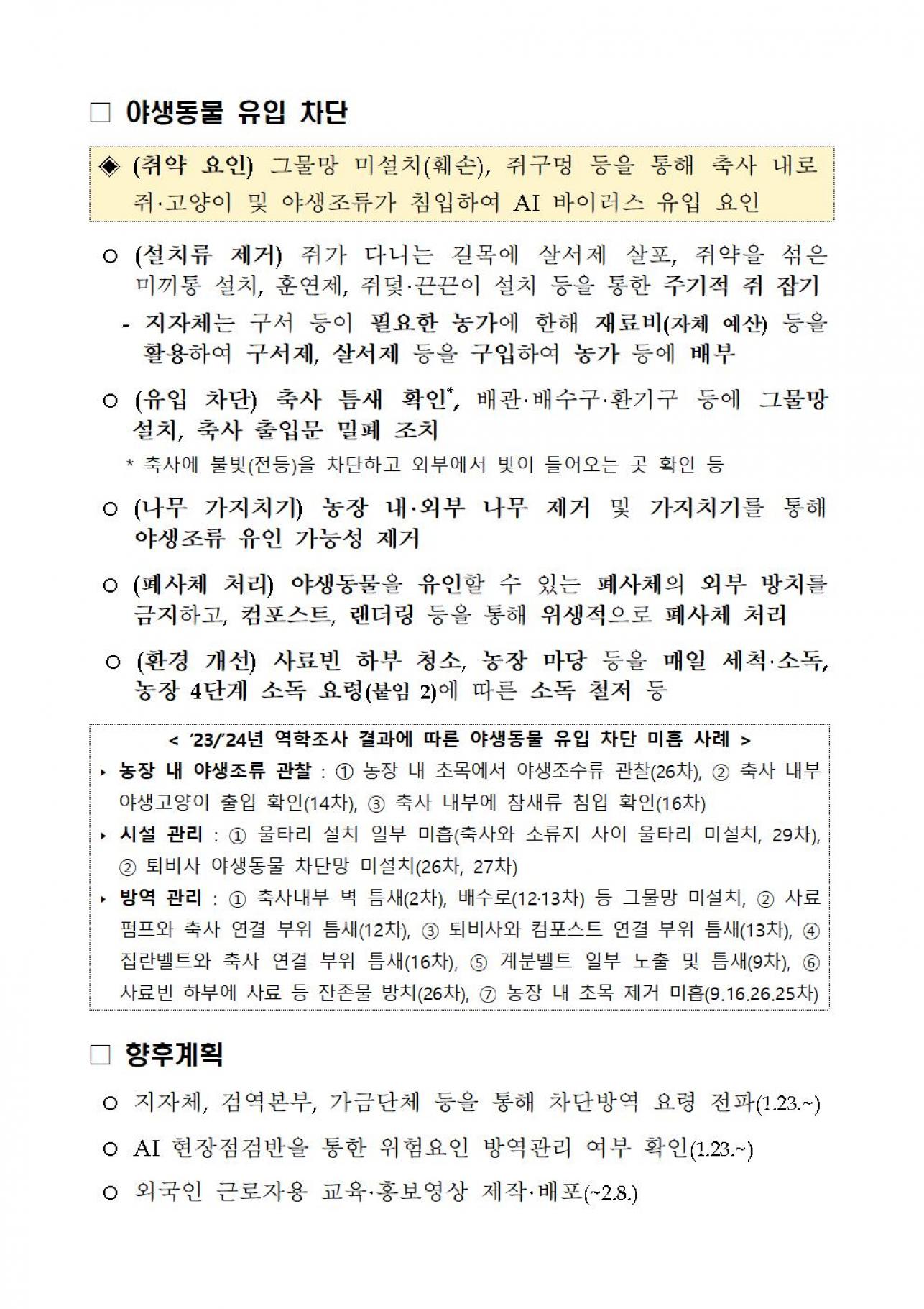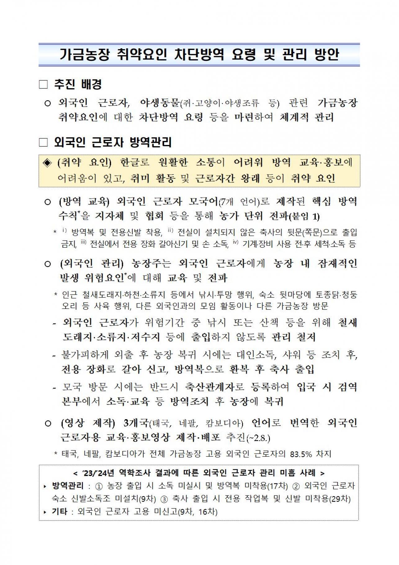 가금농장 취약 요인(외국인근로자·야생동물)차단방역 요령 및 관리 방안 알림 |