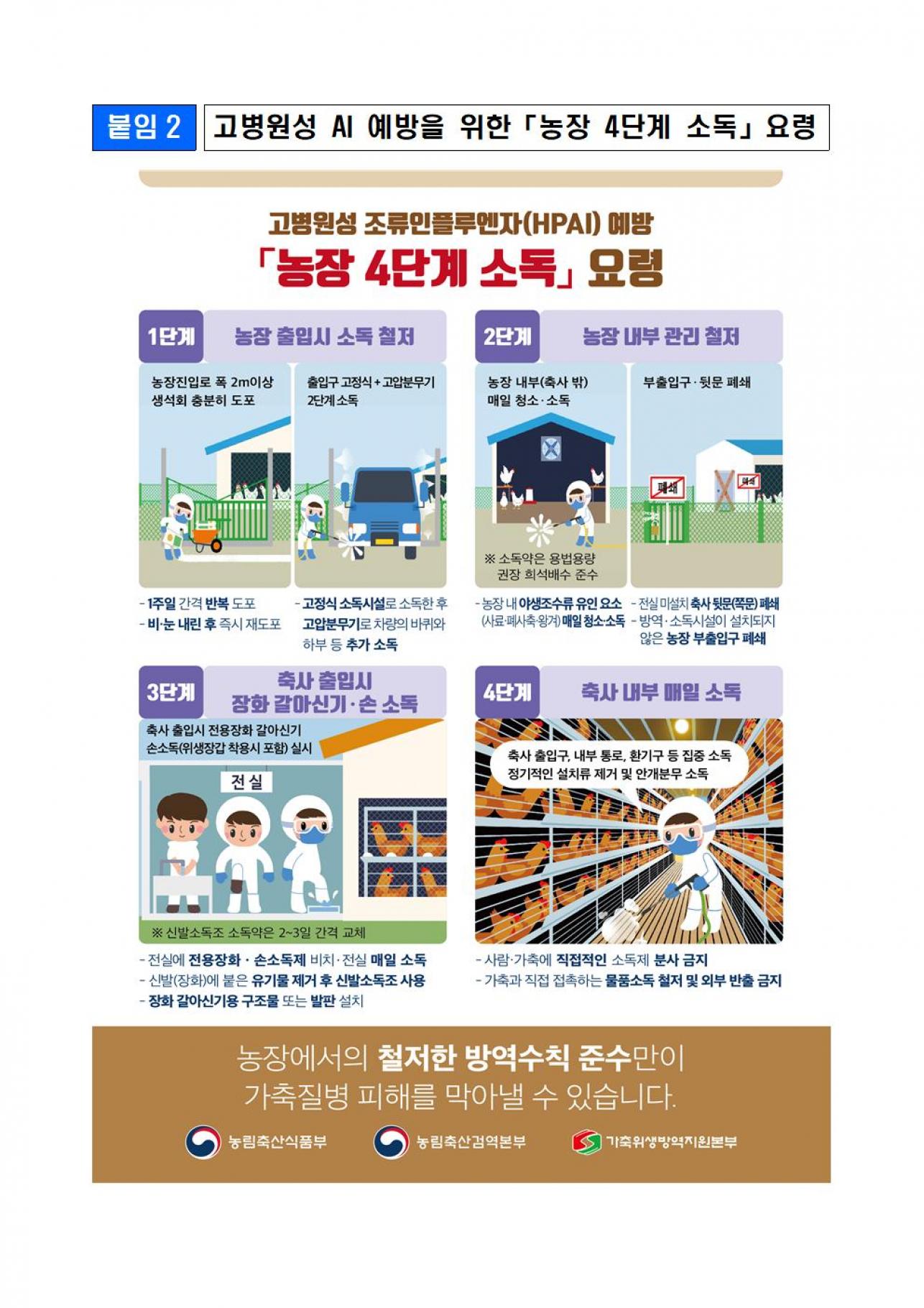 정부는 외국인 근로자, 야생동물(쥐·고양이·야생조류 등) 관련 가금농장 취약 요인에 대한 차단방역 요령 등을 마련하여 체계적 관리를 추진하기 위해 가금농장 취약요인 차단방역 요령 및 관리 대책을 알려드리니, 농가에서는 붙임 파일을 참고하시어 농장 차단방역에 만전을 기해주시기 바랍니다.![]() ![]() ![]()