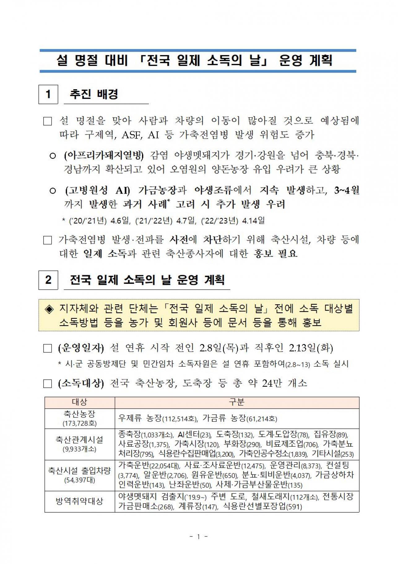 설 명절 대비 전국 일제 소독의 날 운영 계획 알림 |