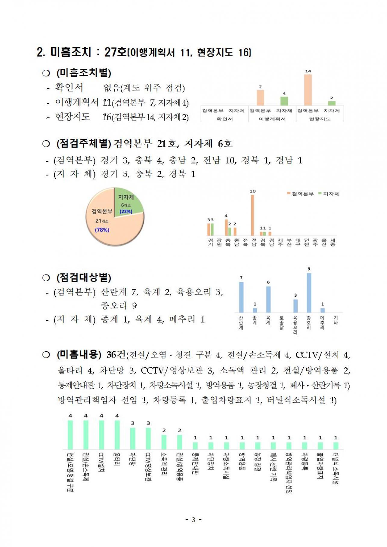 정부에서는 고병원성 조류인플루엔자(AI) 발생위험시기인 동절기를 대비하여 2024년 전국 가금농장의 소독설비·방역시설 및 준수사항 등 1차 방역실태를 점검하고 있으며, '24.5.10. 까지 점검 추진상황을 붙임파일과 같이 알려드리니, 농장에서는 가금농장 방역관리 안내서 및 점검표 등 첨부파일을 확인하시어 미흡사항이 개선될 수 있도록 방역관리에 만전을 기해주시기 바랍니다.![]() ![]() ![]()