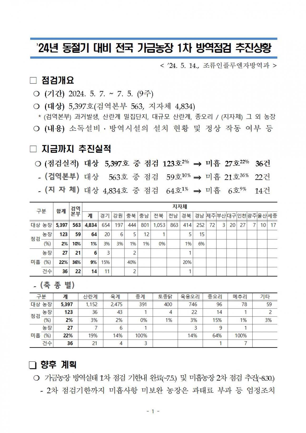 | 240514 ’24년 동절기 대비 전국 가금농장 1차 방역점검 추진상황.hwp | |||