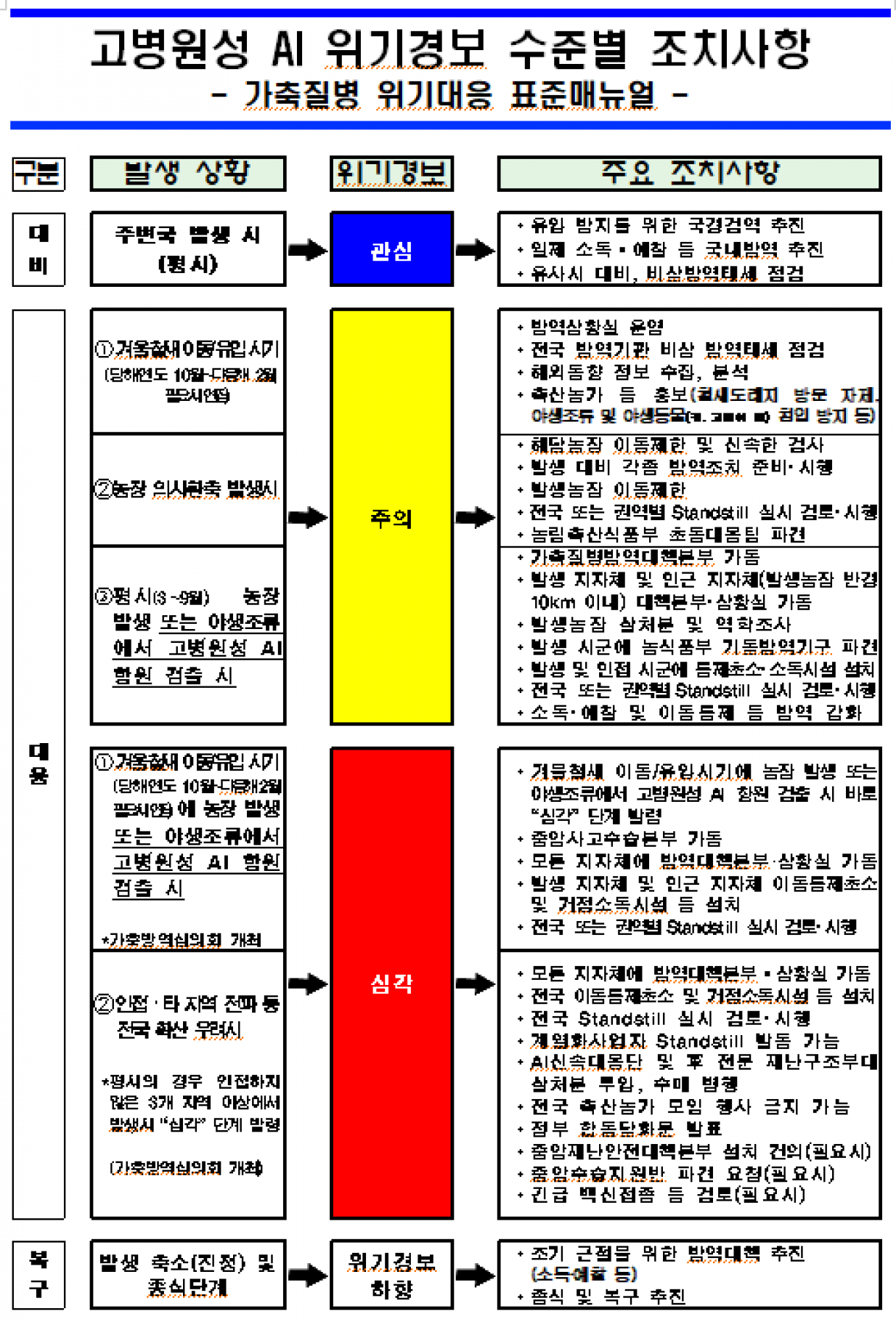 조류인플루엔자(AI) 위기경보 상향(주의→심각) 알림 |