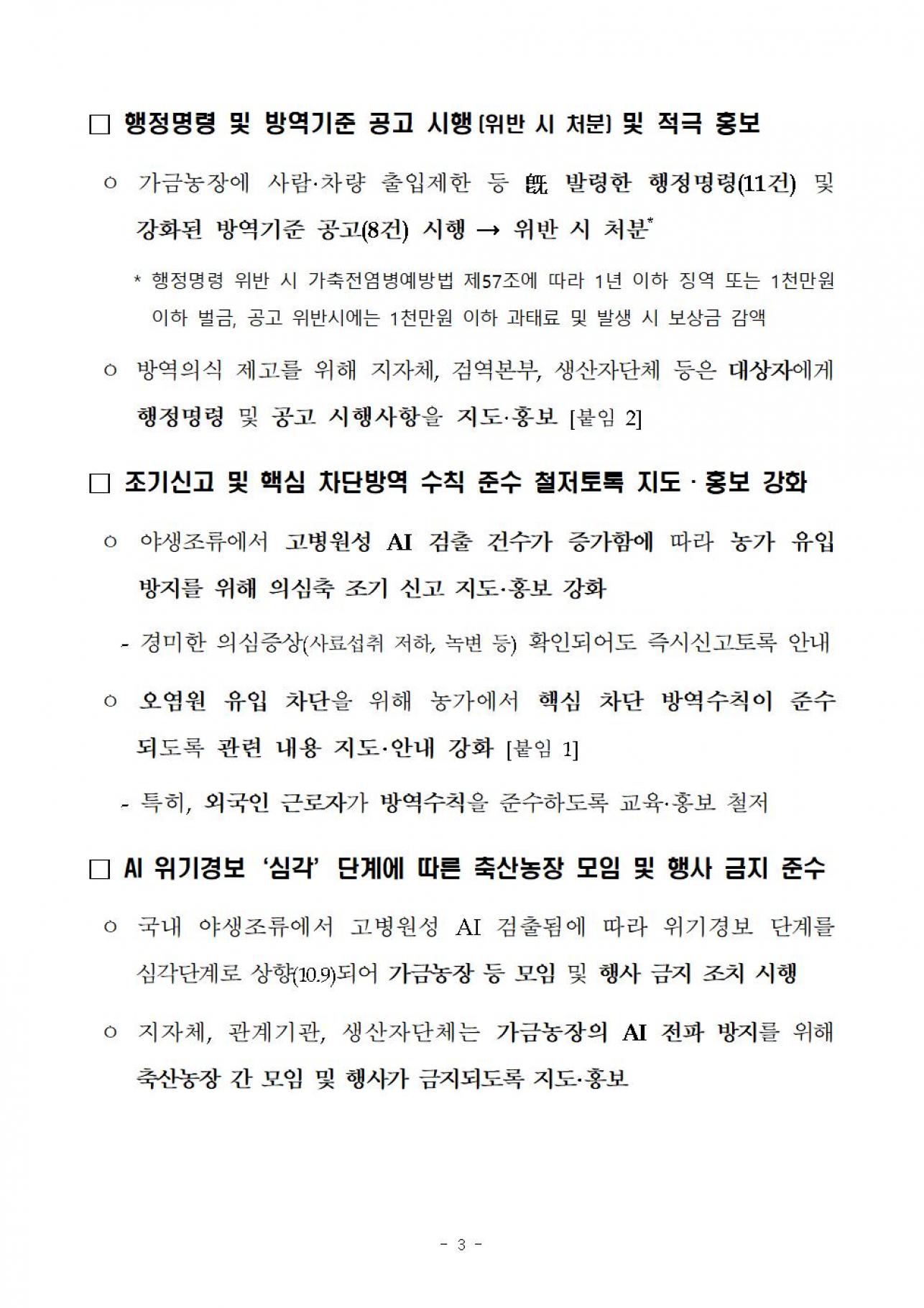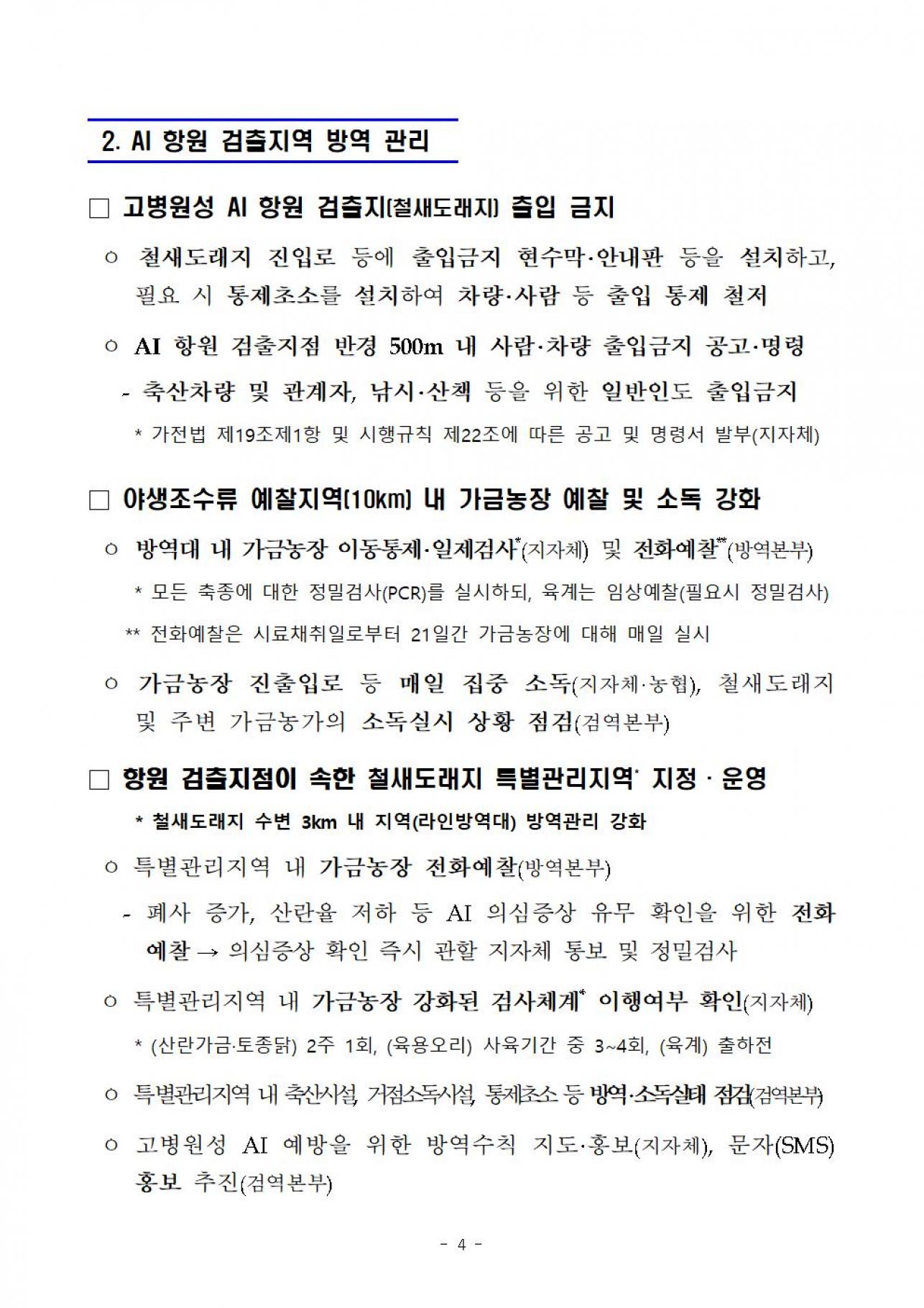 야생조류 고병원성 조류인플루엔자(AI) 검출 관련 방역조치 계획 알림 |