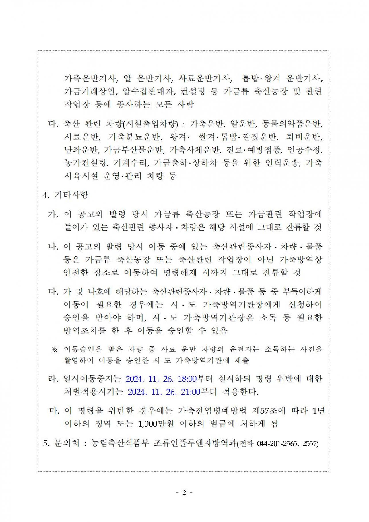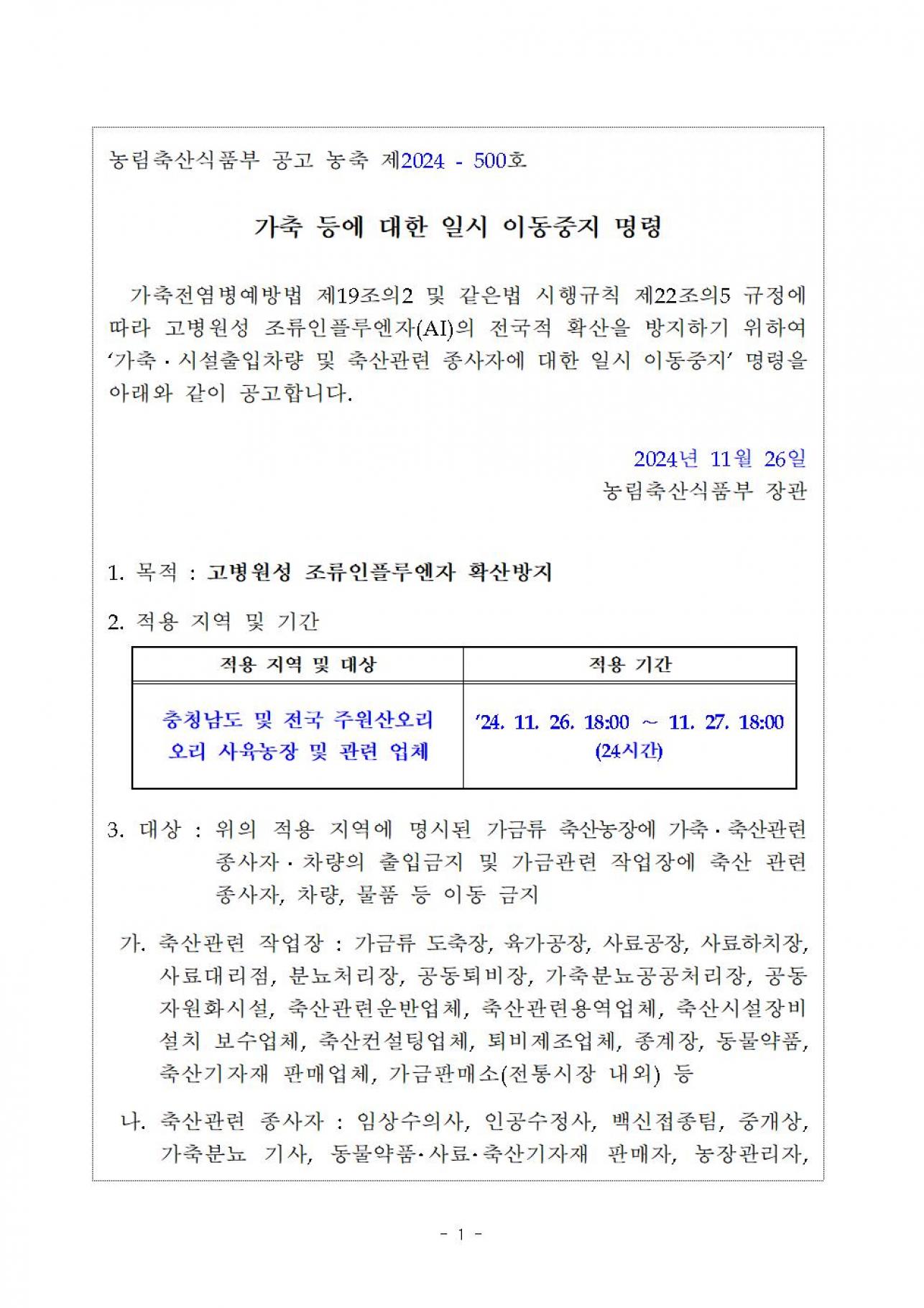 가축 등에 대한 일시 이동중지 명령_24.11.26