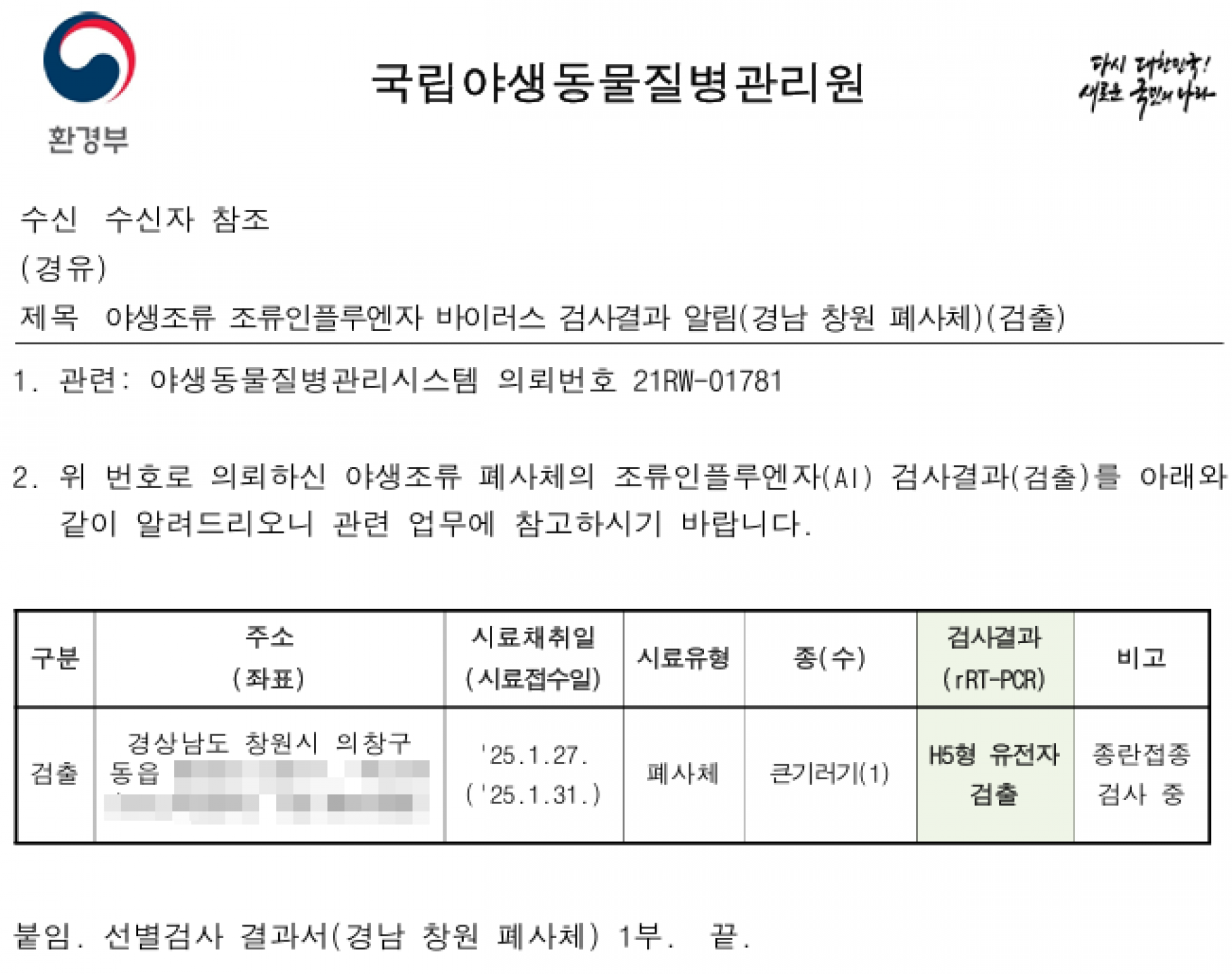 (경남 창원)야생조류 조류인플루엔자(H5) 항원 검출에 따른 차단방역 및 예찰 강화 알림