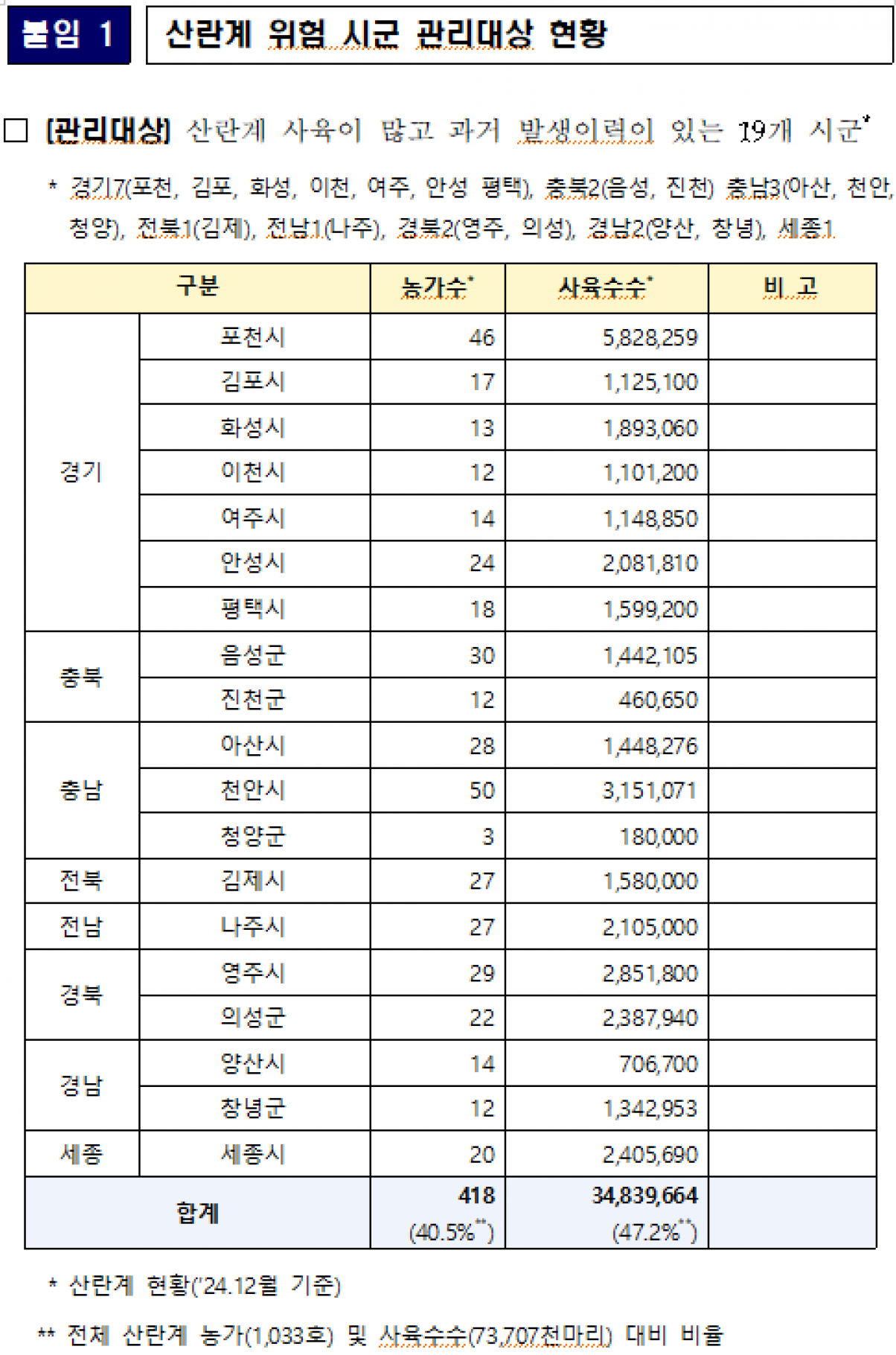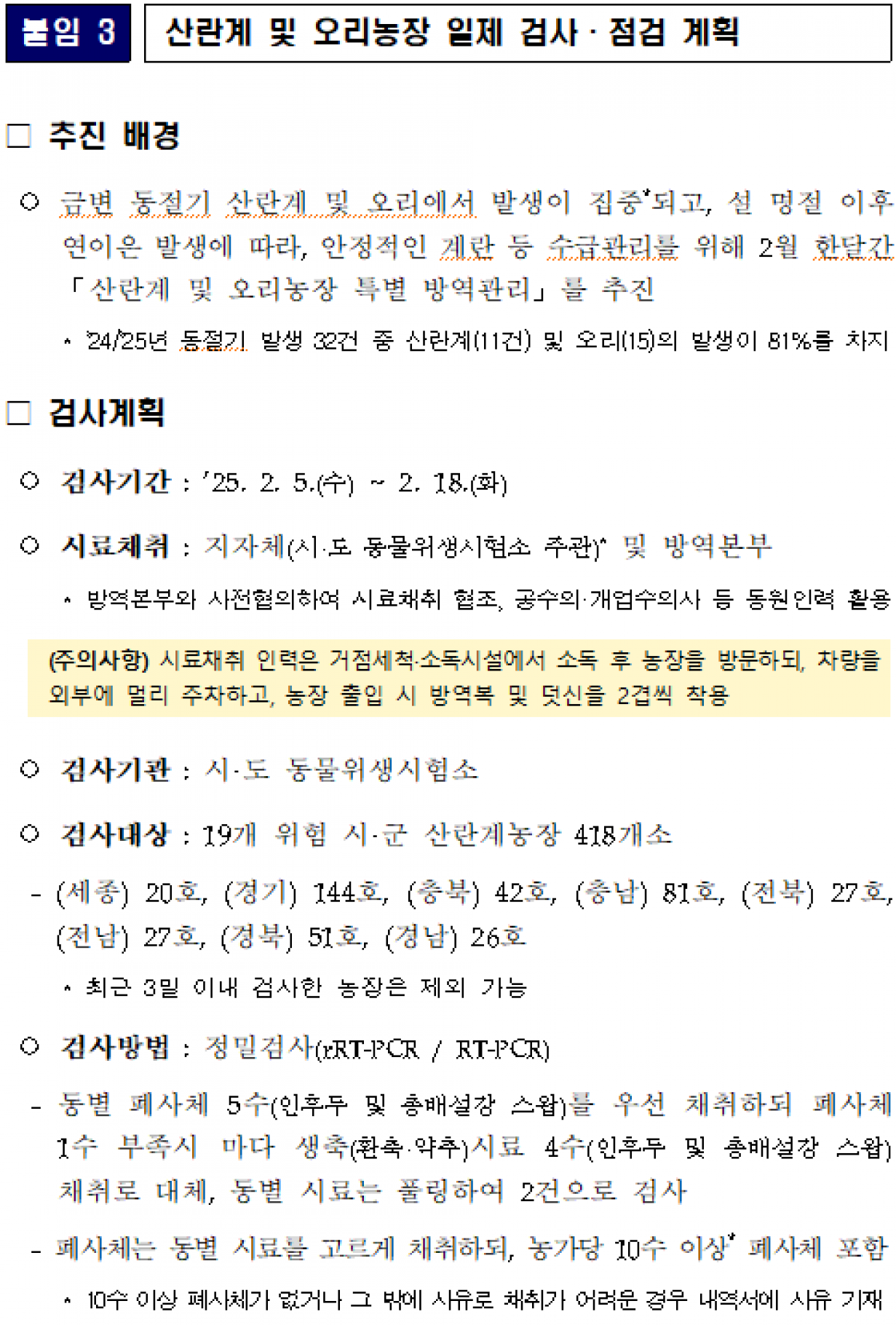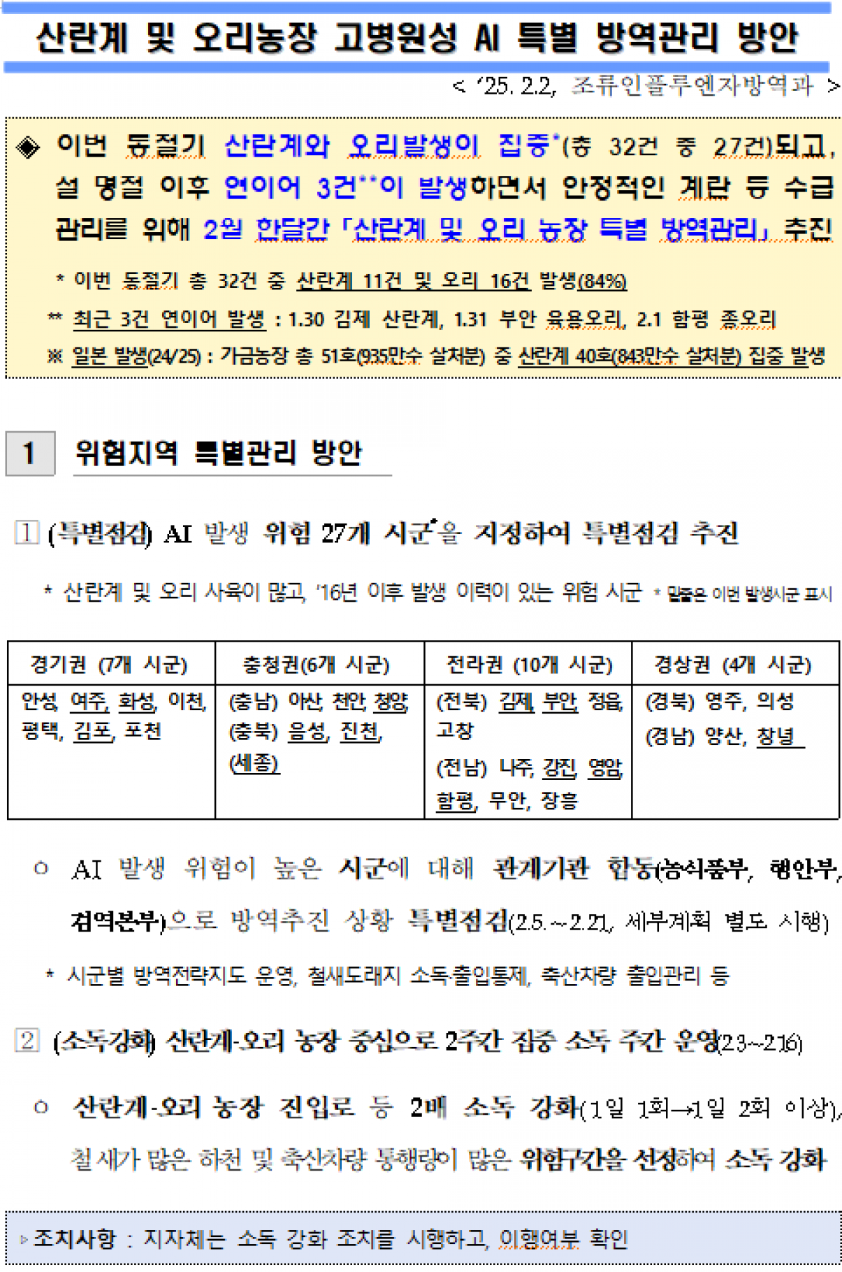 산란계 및 오리농장 고병원성 조류인플루엔자 방역관리 강화방안 알림