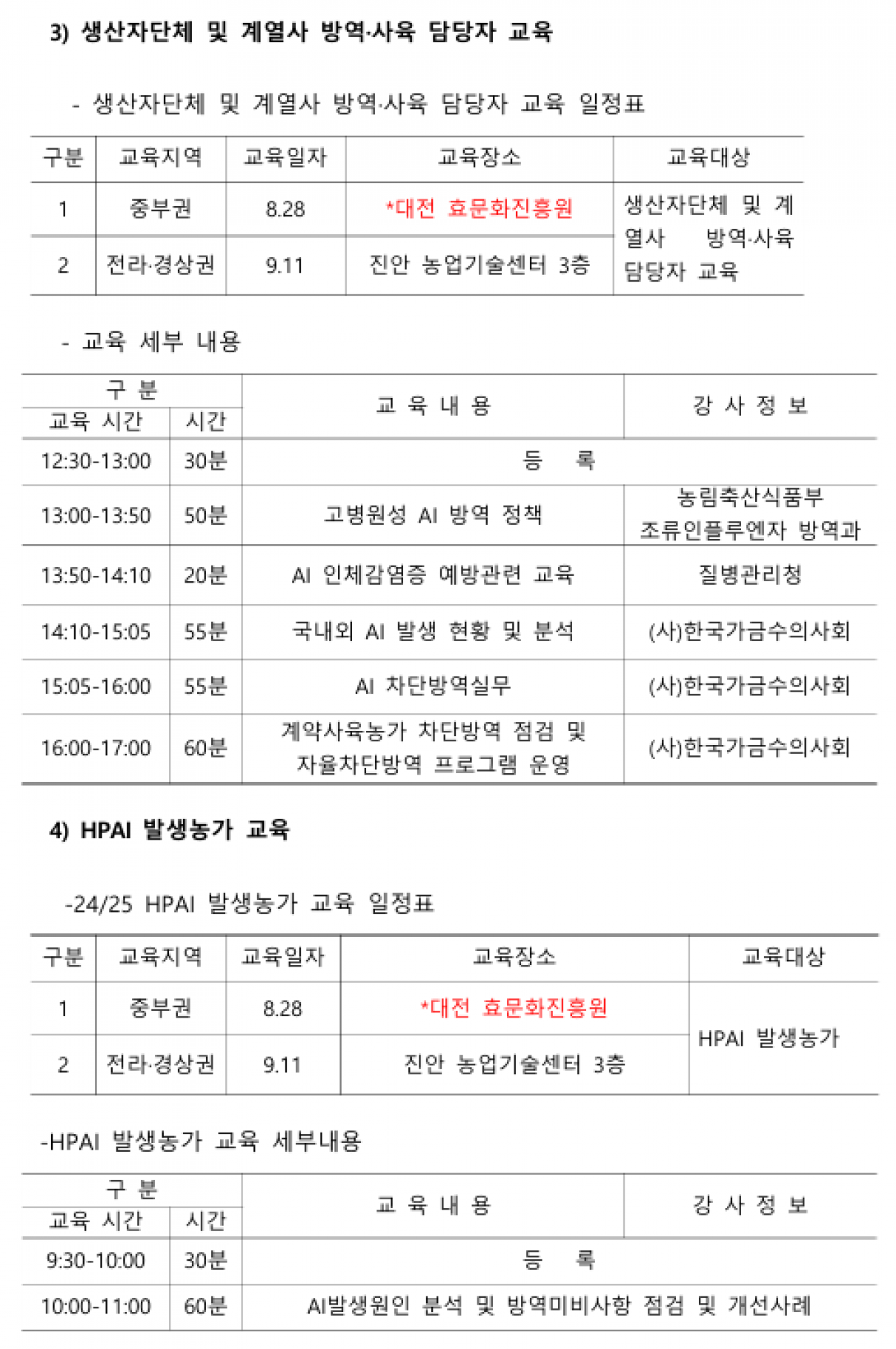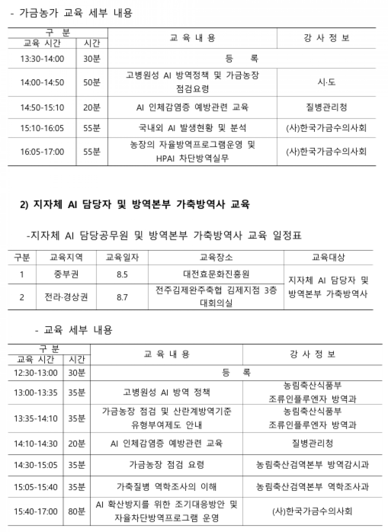 [고병원성 AI 차단방역 역량 강화 교육 안내]