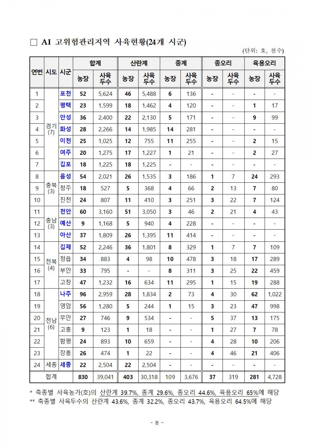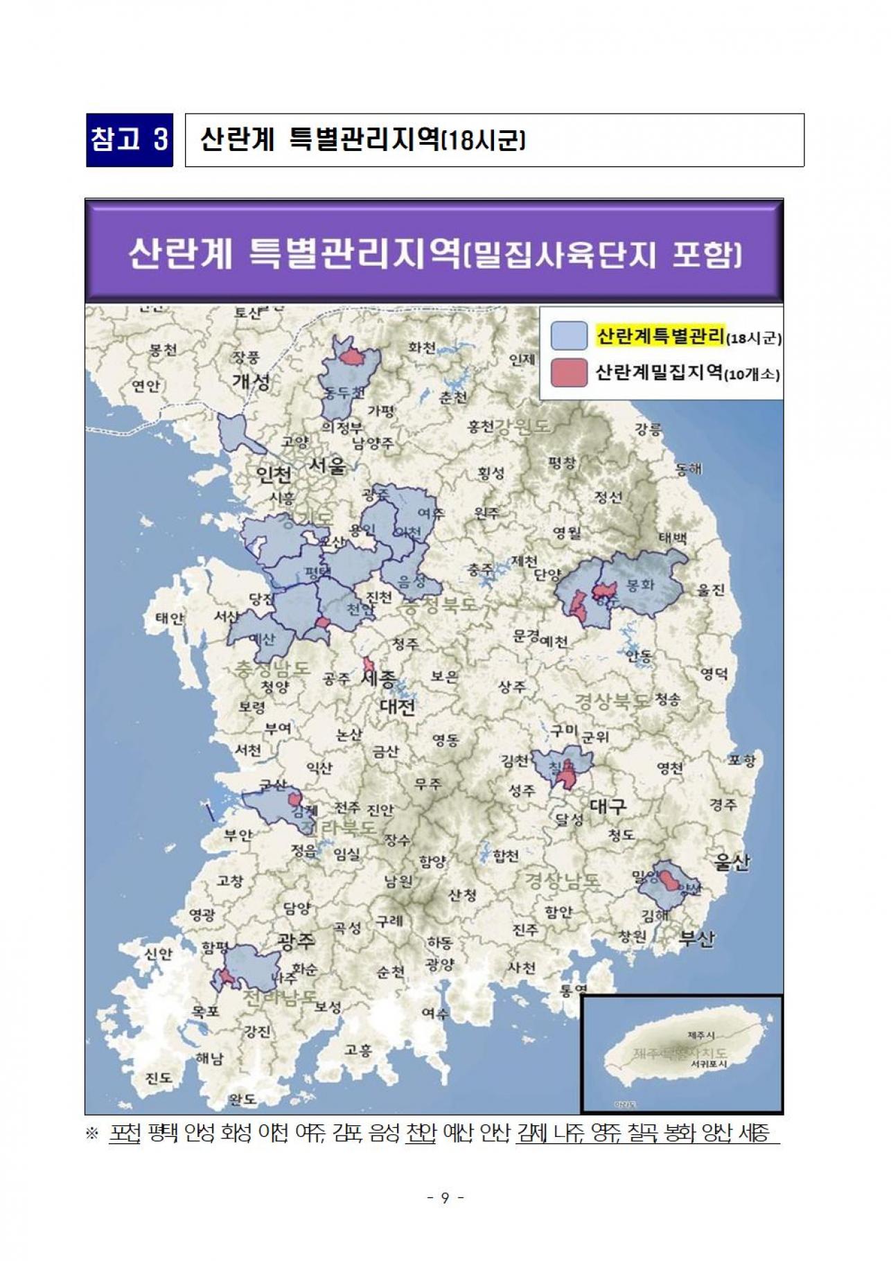 정부는 산란계 밀집 사육단지, 과거 중복 발생시·군 등을 포함해 산란계 특별관리 지역(18시·군) 지정 및 특별방역 관리방안을 수립하여 알려드리니, 농가에서는 이행에 철저를 기하여 주시기 바랍니다.![]() ![]() ![]() ![]() ![]() ![]() ![]() ![]()