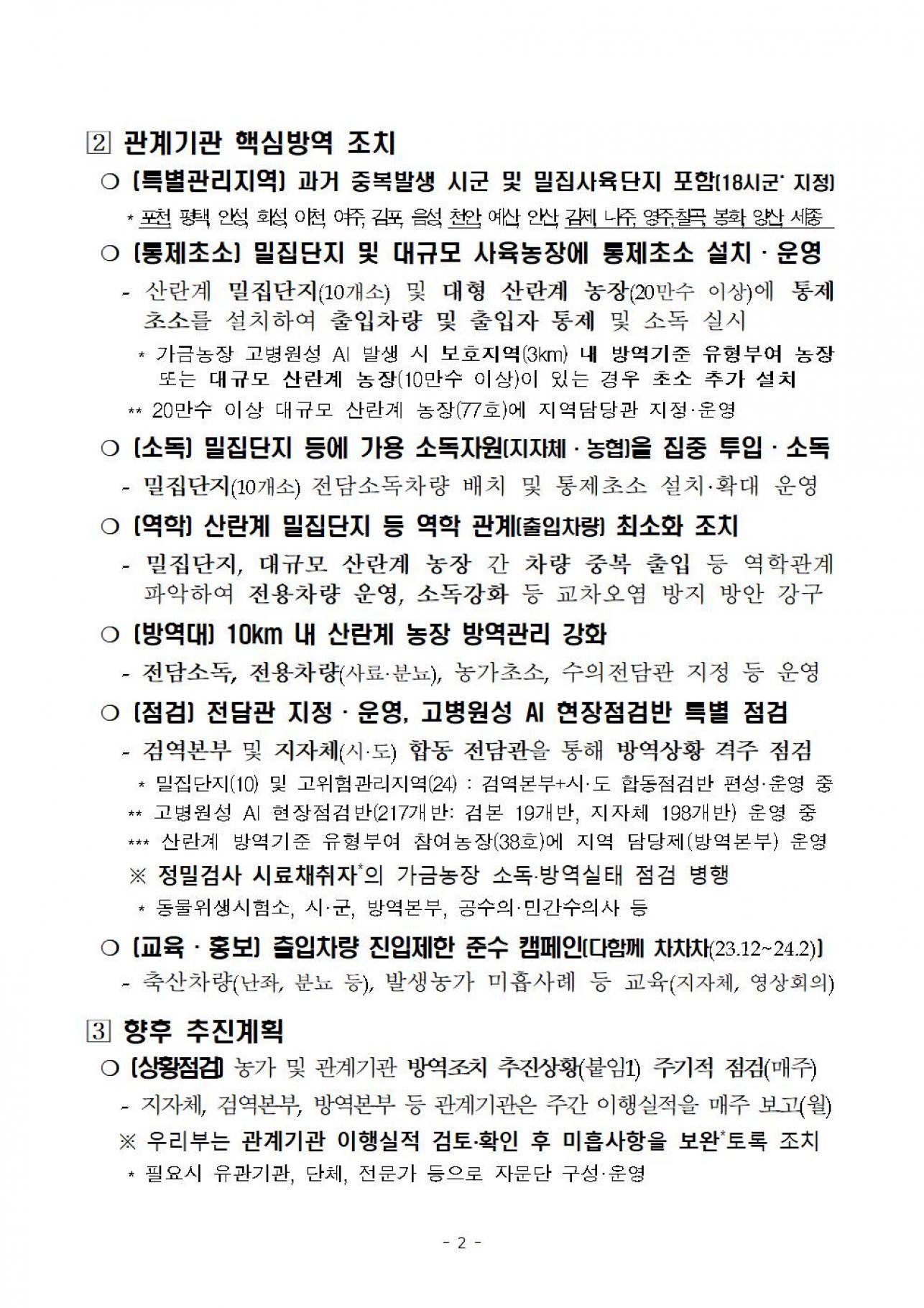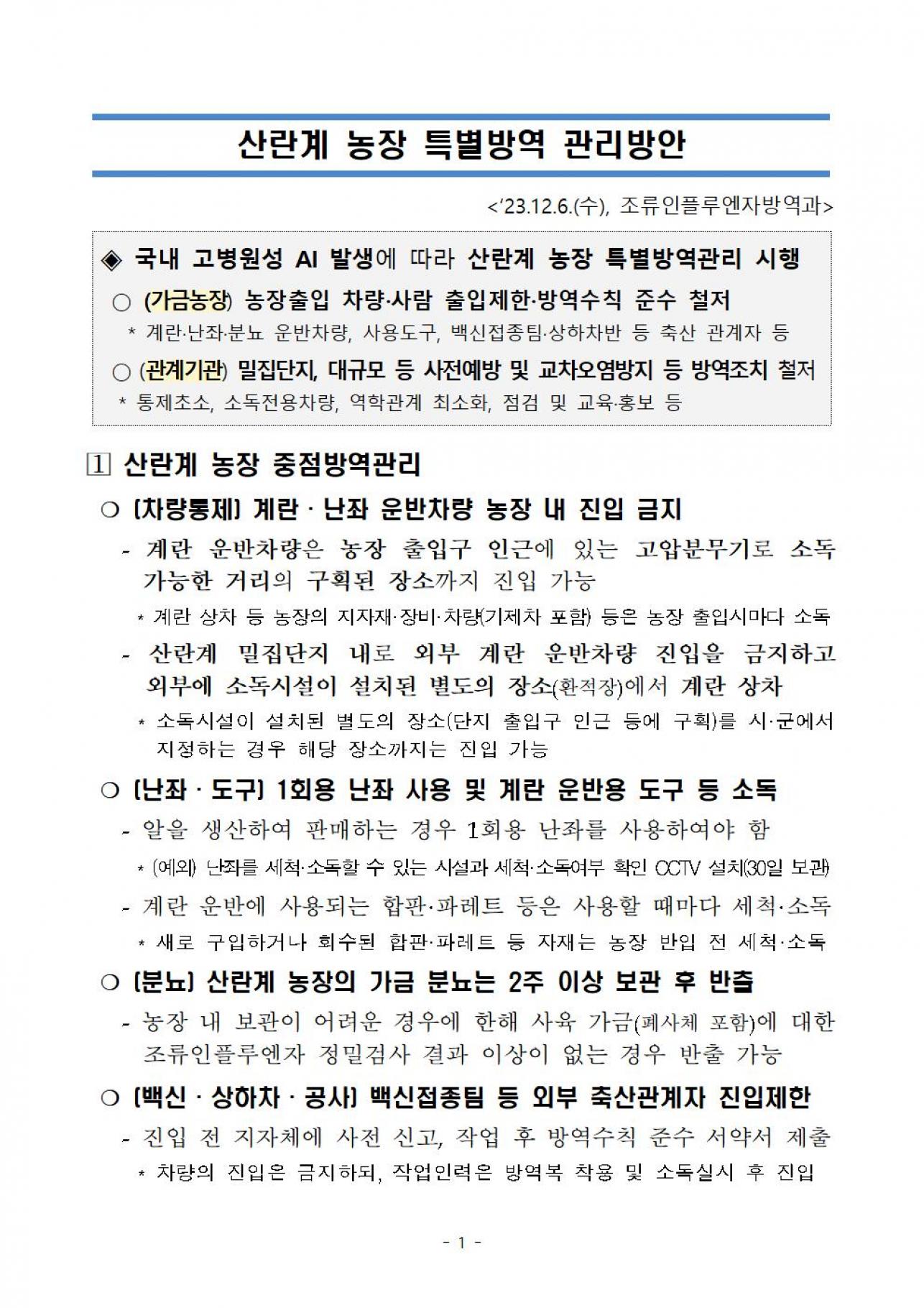 | 231206 (배포용) 2324년 산란계 농장 고병원성 AI 방역관리방안 vf.hwp | |||